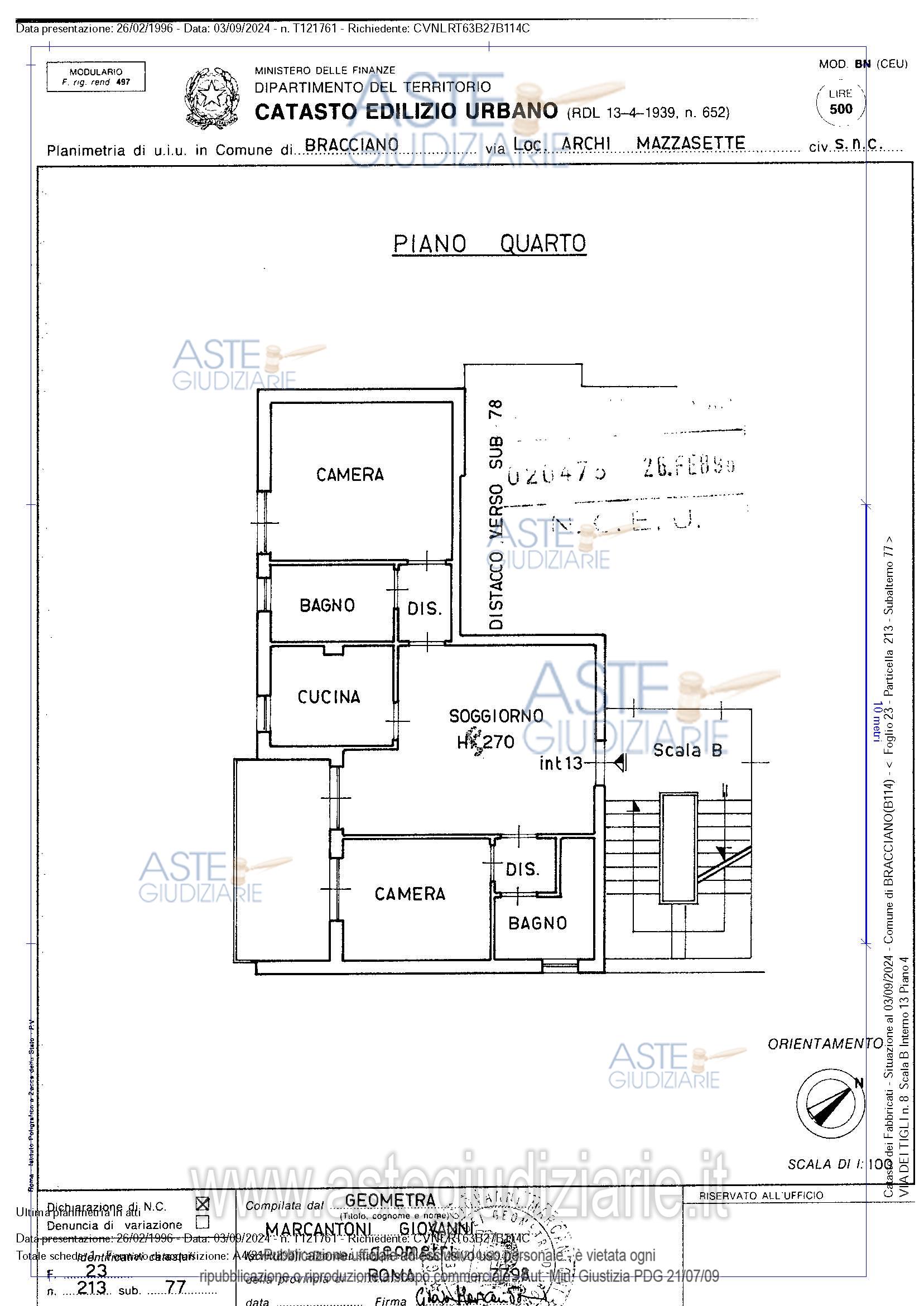 Vendita all'asta Senza incanto, con gara telematica asincrona - LOTTO 6: Apartment on the fourth floor of Building B - interior number 13, consisting of a living room, two bedrooms, kitchen, two bathrooms, a terrace, and a cellar on the S1 floor of Building B - interior number 13, with an area of 3 square meters. Prezzo base € 106.138,40 (offerta minima € 79.603,80). Data inizio operazioni di vendita: 13/01/2026 ore 09:30. Giudice Dott. Giorgio Jachia. Curatore Avv. Maria Teresa Persico. Rif. Tribunale di Roma - Fallimentare n. 58773/1996