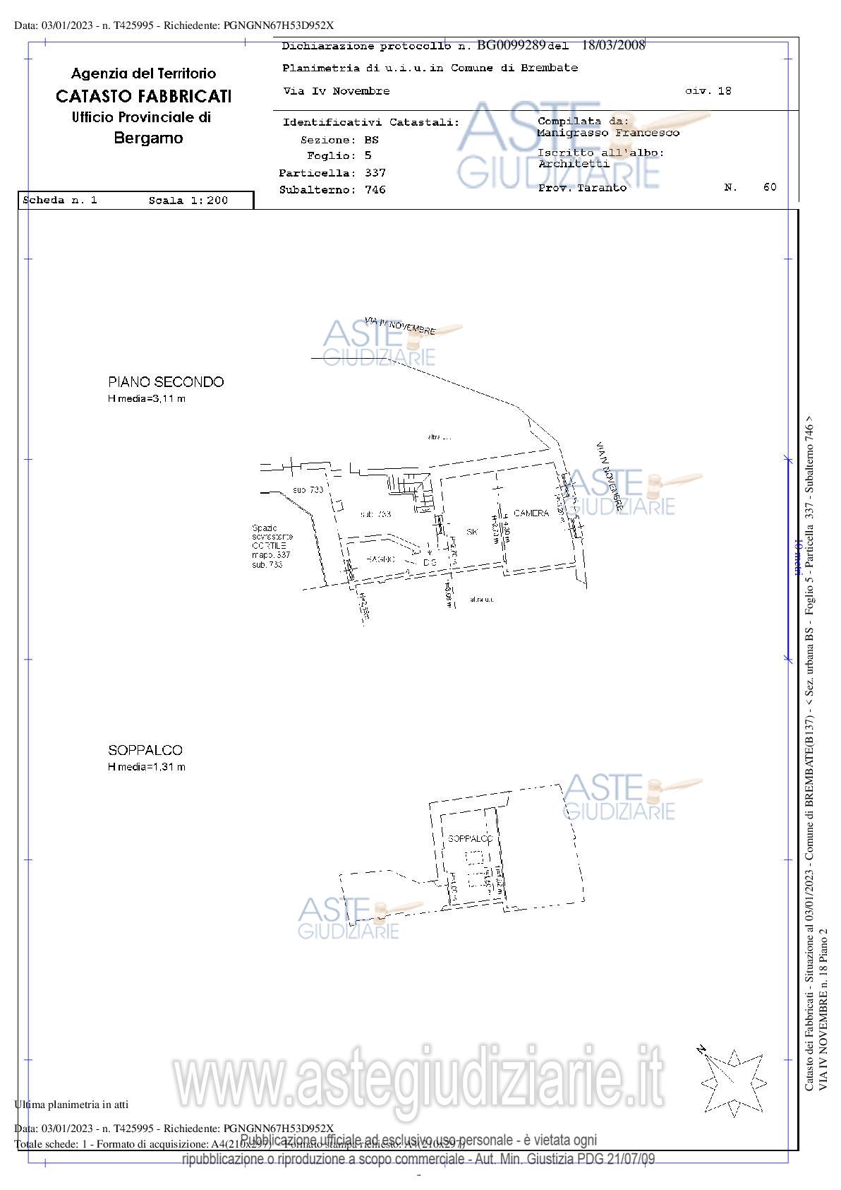 Vendita all'asta Senza incanto, con gara telematica asincrona - LOTTO 1: Piena proprietà (quota intera) di abitazione bilocale di tipo economico posta al secondo piano, dotato di piccolo ingresso, bagno, zona giorno/cucina e camera ricavata nel soppalco raggiungibile da scala posizionata nella zona cucina. Prezzo base € 21.100,00 (offerta minima € 15.825,00). Data inizio operazioni di vendita: 08/01/2026 ore 16:30. Giudice Dott. Angela Randazzo. Professionista delegato alla vendita Avv. Claudia Badon - Email "avv.claudia.badon@tin.it"; Tel. 0350634961. Custode Giudiziario Dott. Antonella Prosperini - Email "antonella.prosperini1974@gmail.com"; Tel. 035232011. Rif. Tribunale di Bergamo - Esecuzione immobiliare post legge 80 n. 378/2022