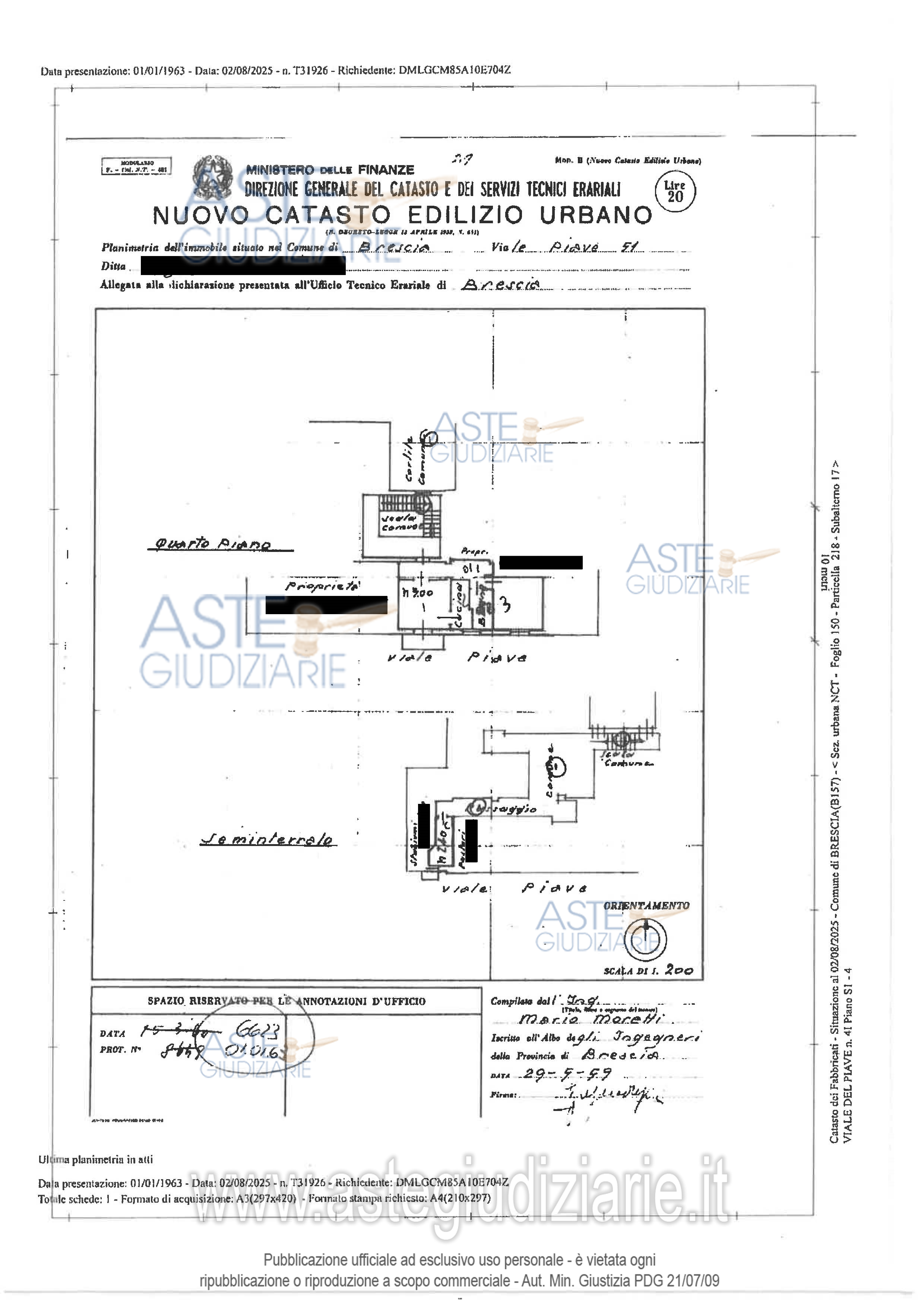 Vendita all'asta Senza incanto, con gara telematica asincrona - LOTTO UNICO: Appartamento posto al quarto piano di un compendioimmobiliare di natura condominiale oltre a cantina di pertinenza posta a piano interrato, il tuttocensito alCatasto Fabbricati - Sez. NCT - Fg. 150mapp. 218 sub 17 cat. A2 - CL.4 - vani 4 - rc €.526,79con le proporzionali quote delle parti comuni ai sensi di legge. Prezzo base € 77.350,00 (offerta minima € 58.012,50). Data inizio operazioni di vendita: 28/01/2026 ore 10:30. Giudice Dellesecuzione Giudice. Professionista delegato alla vendita Dott. Sonia Montanari. Custode Giudiziario Dott. Sonia Montanari - Email "visiteimmobili@anpebrescia.it"; Tel. 3393281619. Rif. Tribunale di Brescia - Espropriazione immobiliare (cartabia) n. 129/2024