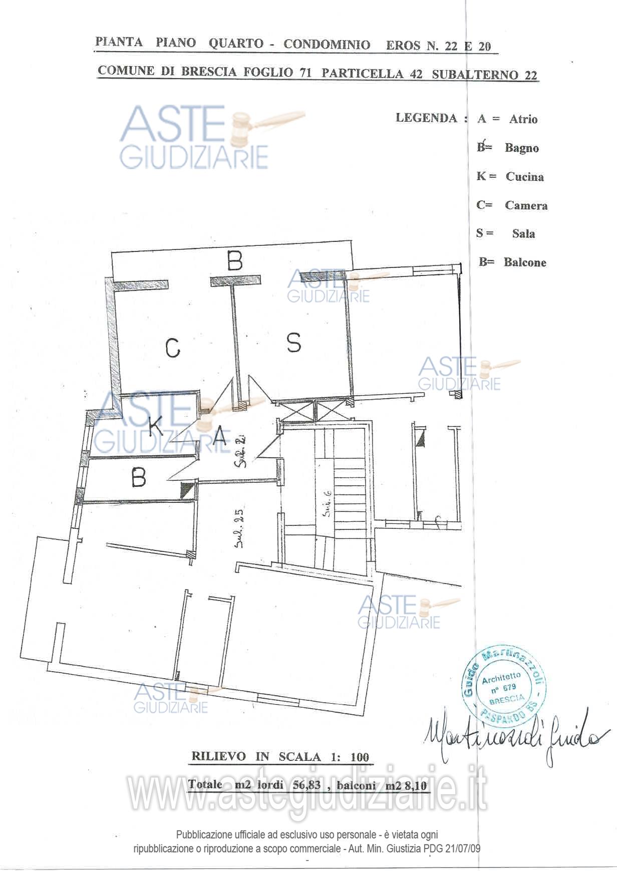 Vendita all'asta Senza incanto, con gara telematica asincrona - LOTTO UNICO: Piena proprietà di appartamento posto al quarto piano. Prezzo base € 100.000,00 (offerta minima € 75.000,00). Data inizio operazioni di vendita: 21/05/2026 ore 09:30. Professionista delegato alla vendita Not. Giovanni Battista Calini - Email "gcalini@notariato.it"; Tel. 030222849. Custode Giudiziario Dott. Vittorio Corniani - Email "ivgbrescia@ivgbrescia.com"; Tel. 030348410. Rif. Tribunale di Brescia - Esecuzione immobiliare post legge 80 n. 85/2011