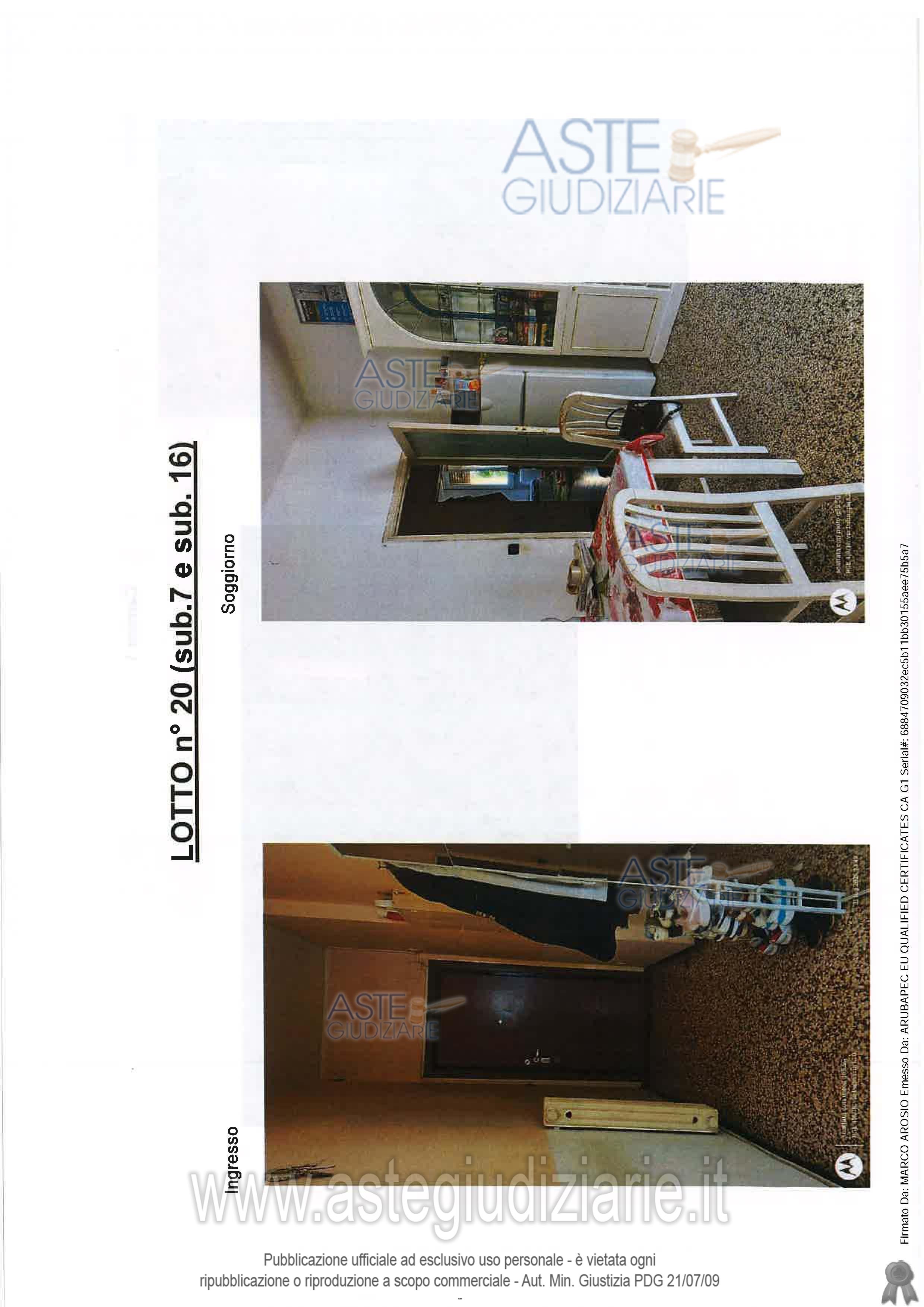 Vendita all'asta Senza incanto, con gara telematica asincrona - LOTTO 20: appartamento posto al primo piano con cantina e autorimessa posti al piano seminterrato. Competono le proporzionali quote delle parti comuni. Prezzo base € 69.400,00 (offerta minima € 52.050,00). Data inizio operazioni di vendita: 10/06/2026 ore 11:30. Professionista delegato alla vendita Not. Angelica Lupoli.