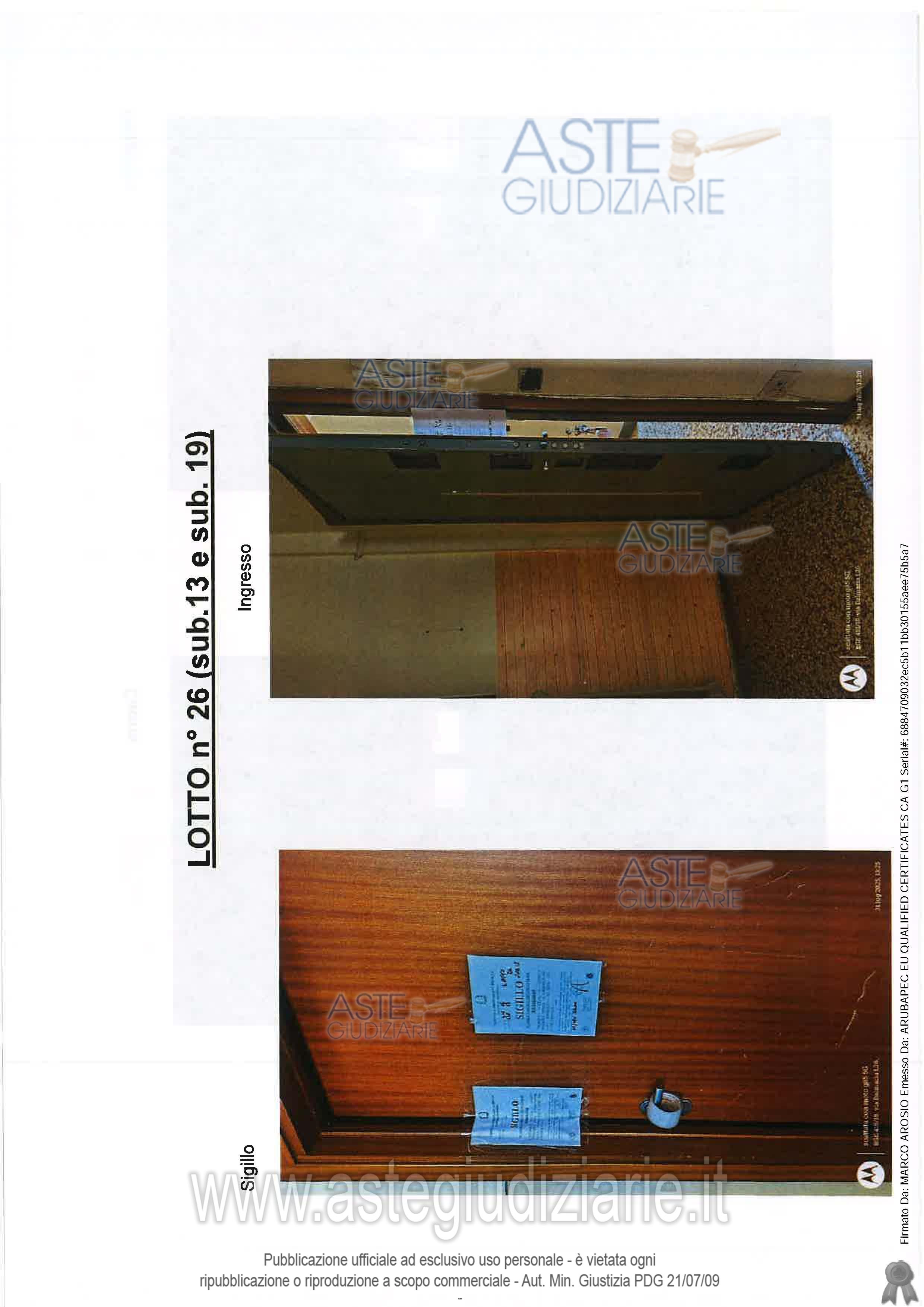 Vendita all'asta Senza incanto, con gara telematica asincrona - LOTTO 26: appartamento posto al terzo piano con cantina e autorimessa posti al piano seminterrato. Competono le proporzionali quote delle parti comuni. Prezzo base € 51.700,00 (offerta minima € 38.775,00). Data inizio operazioni di vendita: 10/06/2026 ore 11:30. Professionista delegato alla vendita Not. Angelica Lupoli.