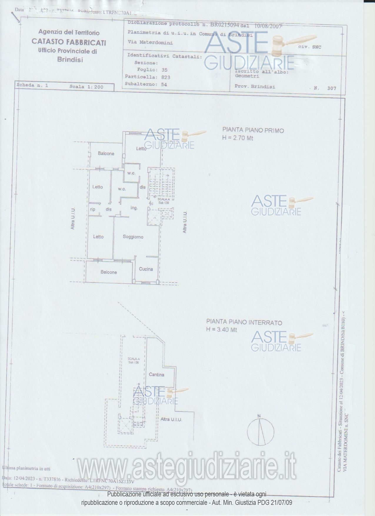 Vendita all'asta Senza incanto, con gara telematica asincrona - LOTTO 1: Piena proprietà della casa di abitazione sita in Brindisi alla via Materdomini (Casale) snc, scala A, interno 6, piano secondo, vani 7.Nel Lotto 1 è compresa anche la cantina di mq 12,09. Prezzo base € 119.515,00 (offerta minima € 89.636,00). Data inizio operazioni di vendita: 12/01/2026 ore 11:30. Giudice Antonio Ivan Natali. Professionista delegato alla vendita Avv. Concetta De Giorgi - Email "concettadegiorgi@libero.it"; Tel. 3287568019. Custode Giudiziario Avv. Concetta De Giorgi - Email "concettadegiorgi@libero.it"; Tel. 3287568019. Rif. Tribunale di Brindisi - Esecuzione immobiliare post legge 80 n. 86/2023