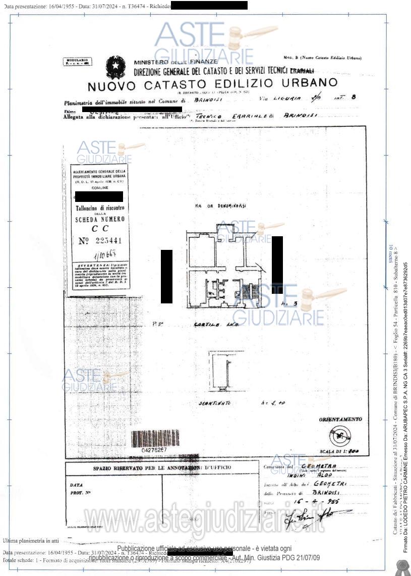 Vendita all'asta Senza incanto, con gara telematica asincrona - LOTTO 1: Piena proprietà dell’appartamento al piano terzo composto da ingresso, cucina/pranzo, soggiorno, bagno, due camere da letto, ripostiglio e balcone sul cortile interno pertinenziale pedonale e parcheggio scoperto. Prezzo base € 55.574,90 (offerta minima € 41.681,18). Data inizio operazioni di vendita: 22/06/2026 ore 09:50. Giudice Francesco Giliberti. Professionista delegato alla vendita Avv. Silvana Cristofaro. Custode Giudiziario Avv. Silvana Cristofaro - Email "crisilvy@libero.it". Rif. Tribunale di Brindisi - Esecuzione immobiliare post legge 80 n. 33/2024