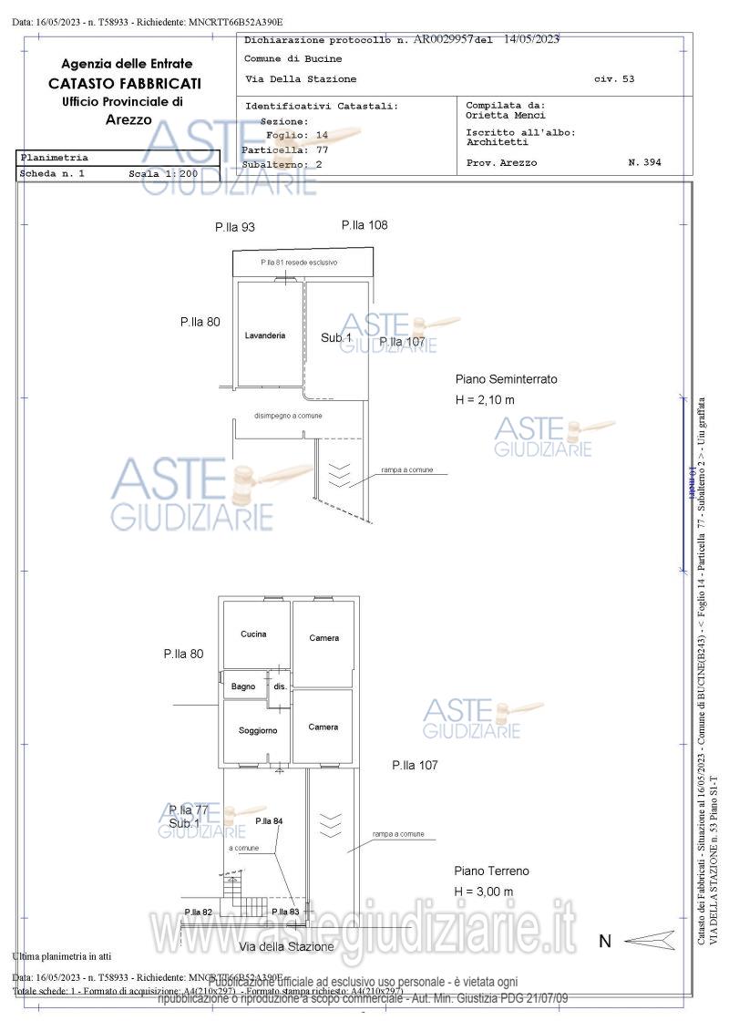 Vendita all'asta Senza incanto, con gara telematica sincrona mista - LOTTO UNICO: diritto di piena proprietà per l’intero su appartamento per civile abitazione in Comune di Bucine (AR), Via della Stazione 53, ubicato a piano terra di un fabbricato di maggior consistenza, composto da ingresso-soggiorno, disimpegno, cucina, due camere e bagno, con annessi al piano seminterrato locale ad uso cantina e piccolo resede esclusivo di circa 9 mq. Prezzo base € 91.000,00 (offerta minima € 68.250,00). Data vendita 27/05/2026 ore 10:00. Professionista delegato alla vendita Dott. Chiara Gilardoni - Email "chia.gilardoni@gmail.com"; Cell. 3401845787. Custode Giudiziario Avv. Istituto Vendite Giudiziarie Arezzo - Siena - Email "visite.ivg@gmail.com"; Cell. 3397337017; Tel. 0577318111. Rif. Tribunale di Arezzo - Esecuzione immobiliare post legge 80 n. 119/2022