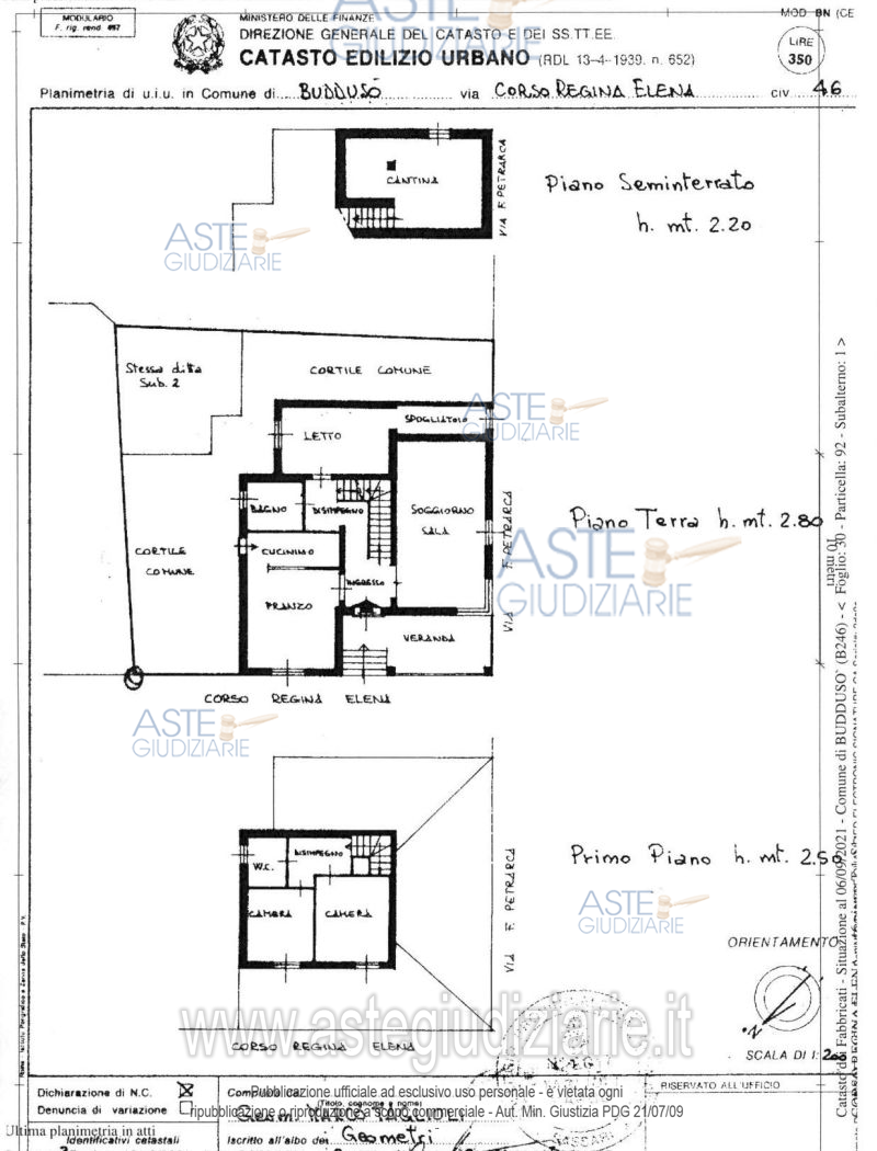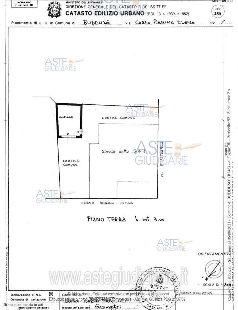 Vendita all'asta Senza incanto - LOTTO UNICO: Lotto unico Buddusò Corso Regina Elena n.52 proprietà 1/1 : Bene1 garage/magazzino, mq.45 ca.,con cortile,C.Regina Elena, NCEU Foglio 30 mappale 68 sub1,cat.C/2, NCT Foglio 30 mappale 68 ente urbano;comunicante con altre unità-separazione a carico dell’aggiudicatario. Bene2: appartamento su tre livelli seminterrato, terra-primo con cortile,NCEU Foglio 30 mappale 92 sub1,cat. A/2,NCT Foglio 30 mappale 90 ente urbano. Bene3: garage NCEU Foglio 30 mappale 92 sub2,cat. C/6, NCT Foglio 30 mappale 90 ente urbano. Prezzo base € 86.104,28 (offerta minima € 64.578,21). Data vendita 15/04/2026 ore 16:30. Professionista delegato alla vendita Avv. Francesca Pes - Email "info.slpessassari@gmail.com"; Tel. 079234937. Custode Giudiziario Istituto Vendite Giudiziario Sassari - Email "visitaivgsassari@gmail.com"; Tel. 079260228. Rif. Tribunale di Sassari - Esecuzione immobiliare post legge 80 n. 180/2014