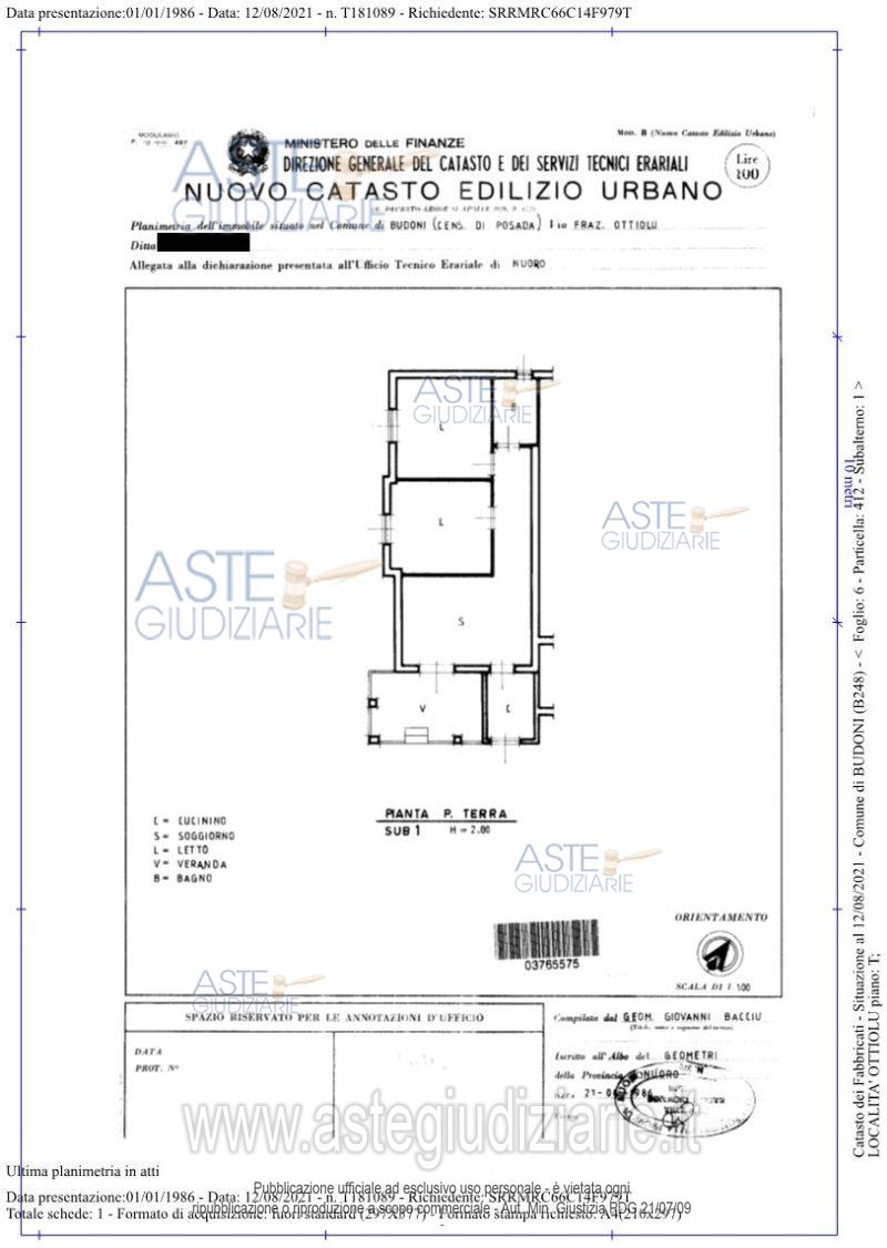 Vendita all'asta Competitiva - LOTTO UNICO: Piena proprietà del 50% indiviso dell’appartamento sito in Budoni – loc. Ottiolu, via dei Gerani, censito al N.C.E.U. di Nuoro al foglio 6, particella 412, subalterno 1, piano terra, categoria A/2, rend. Catastale € 402,84, (Coord. Geografiche: Latitudine: 40.737924 | Longitudine: 9.705061). L'immobile viene posto in vendita per il diritto di PROPRIETA’ (1/2 DELL’IMMMOBILE) Stato dell’immobile: Libero. Prezzo base € 30.000,00 (offerta minima € 30.000,00). Data vendita 16/12/2025 ore 10:00. Curatore Dott. Francesco Manca - Email "studiomanca@yahoo.it"; Cell. 3929741730. Rif. Tribunale di Nuoro - Fallimentare n. 4/1991