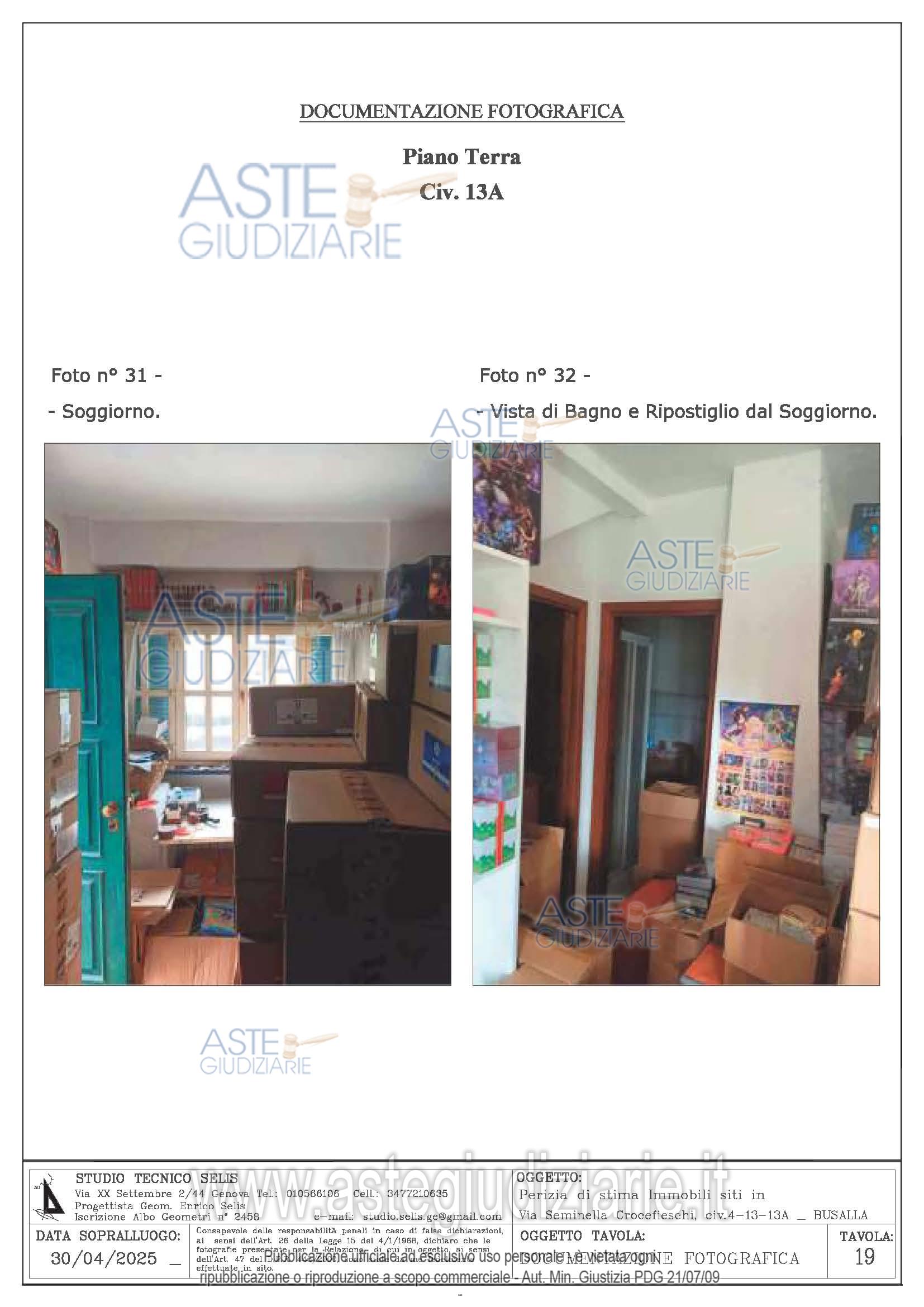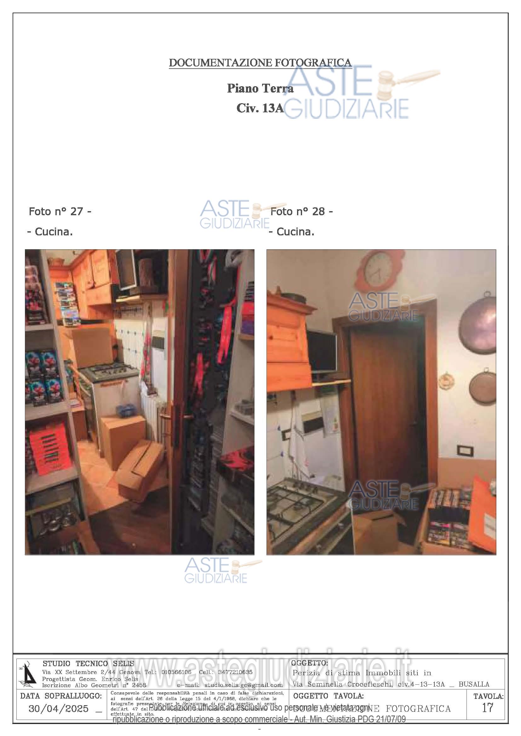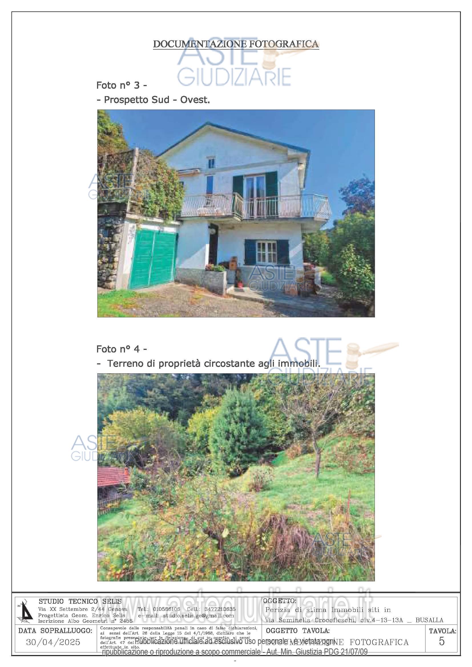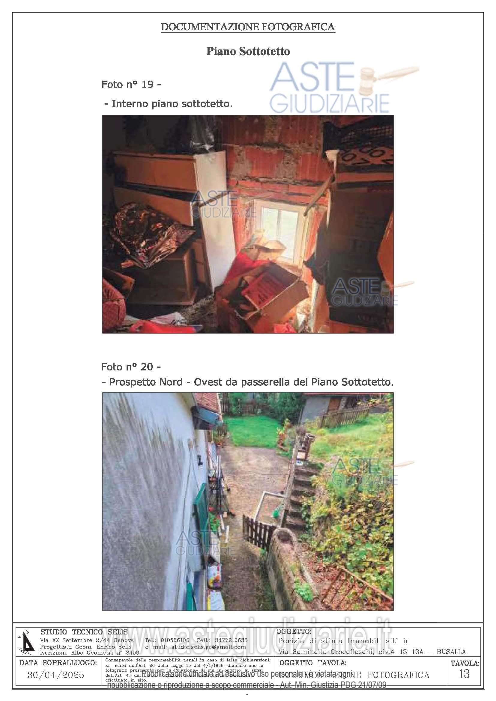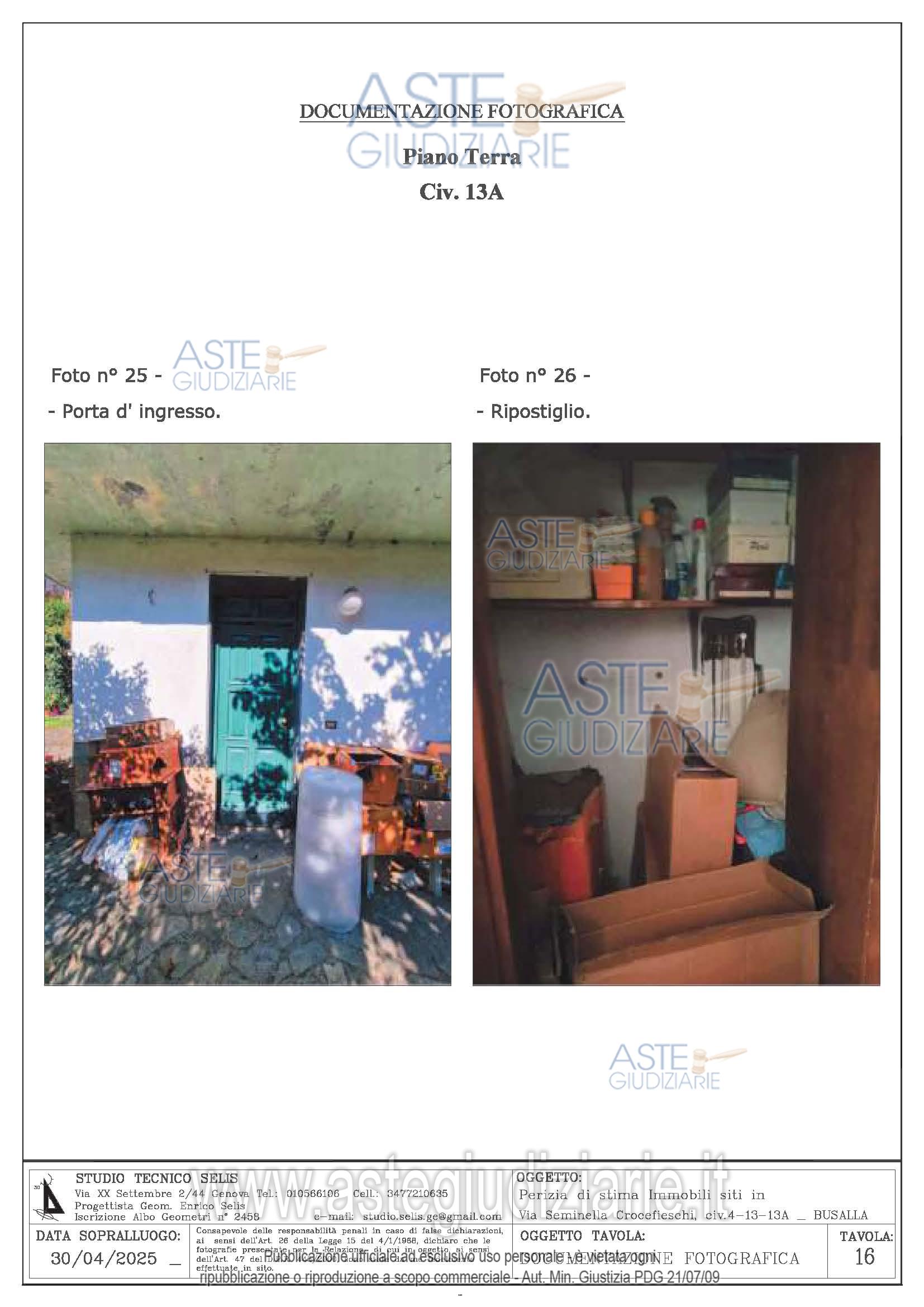 Vendita all'asta Senza incanto, con gara telematica sincrona mista - LOTTO UNICO: n. 8 beni: Appartamento ubicato al civ. 13 di Via Seminella Crocefieschi Piano T-1. Appartamento ubicato al civ. 13° di Via Seminella Crocefieschi Piano T. Magazzino civ. 13 di Via Seminella Crocefieschi Piano S1. Magazzino civ. 13 di Via Seminella Crocefieschi Piano S1. Magazzino civ. 4 di Via Seminella Crocefieschi Piano T. Terreno civ. 13 di Via Seminella Crocefieschi. Box civ. 13 di Via Seminella Crocefieschi Piano S1. Sottotetto civ. 13 di Via Seminella Crocefieschi Piano 2 non accatastato. Prezzo base € 150.000,00 (offerta minima € 127.500,00). Data vendita 29/04/2026 ore 15:30. Curatore Dott. Claudia Rizzato - Email "cl.rizzato@gmail.com"; Tel. 010562217. Rif. Tribunale di Genova - Liquidazione controllata(cci) n. 57/2025