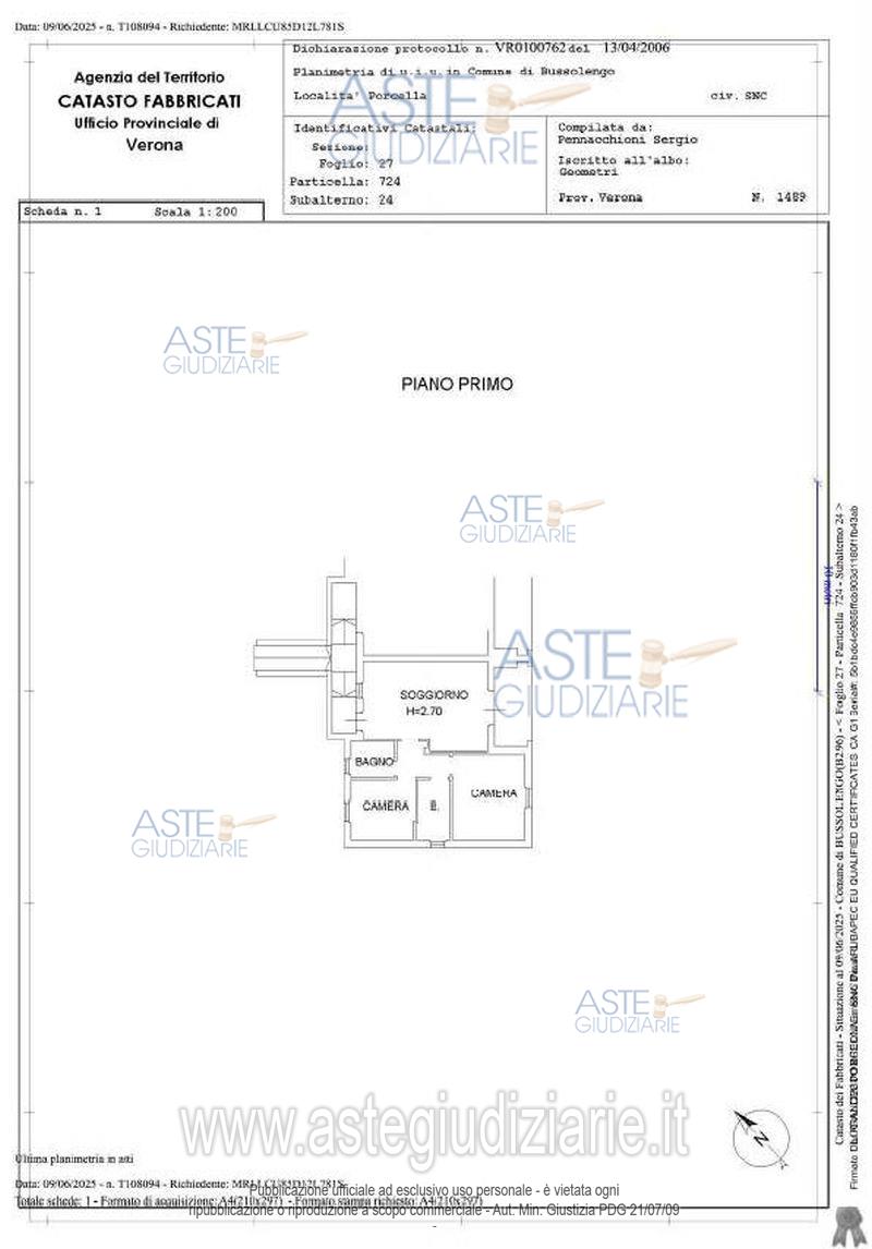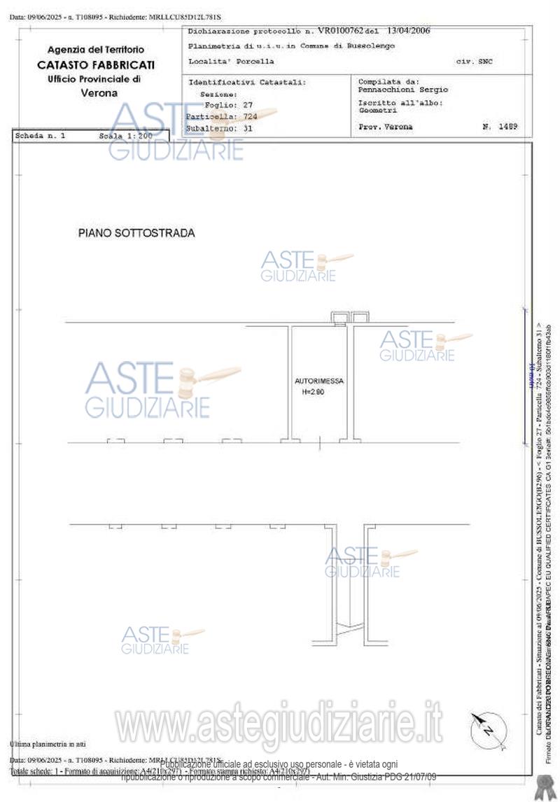 Custode Giudiziario: Avv. Marta Golabek - Email "marta.golabek@veronalex.eu"; Tel. 045/6577271.