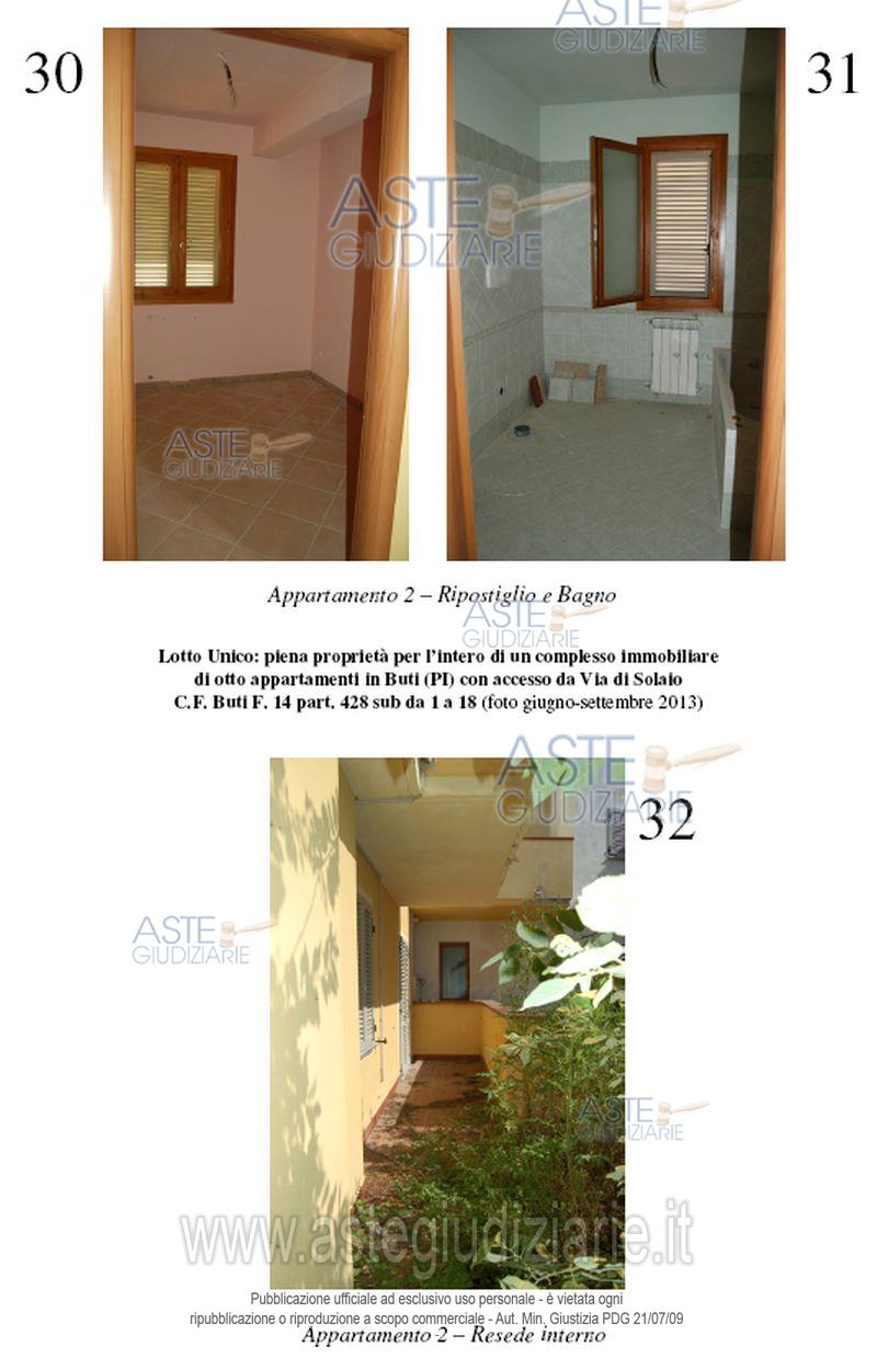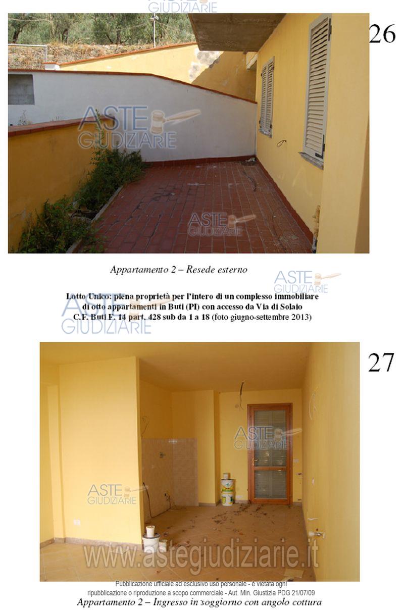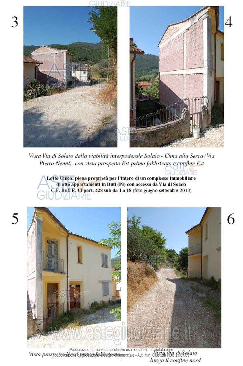 Vendita all'asta Senza incanto, con gara telematica asincrona - LOTTO UNICO: In Comune di Buti, con accesso da Via di Solaio in Buti (per l’accesso carrabile dalla strada interpoderale Solaio - Cima alla Serra, denominata anche Via Pietro Nenni, non sono state terminate le opere di urbanizzazione), piena proprietà dell’intero di un complesso immobiliare formato da due corpi di fabbrica. Prezzo base € 124.000,00 (offerta minima € 93.000,00). Data inizio operazioni di vendita: 11/03/2026 ore 09:30. Giudice Marco Zinna. Professionista delegato alla vendita Not. Barbara Bartolini. Custode Giudiziario Cosimo Erriquez - Email "prenotazionipisa@astagiudiziaria.com". Rif. Tribunale di Pisa - Esecuzione immobiliare post legge 80 n. 235/2012