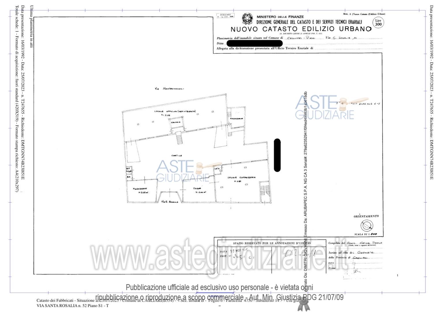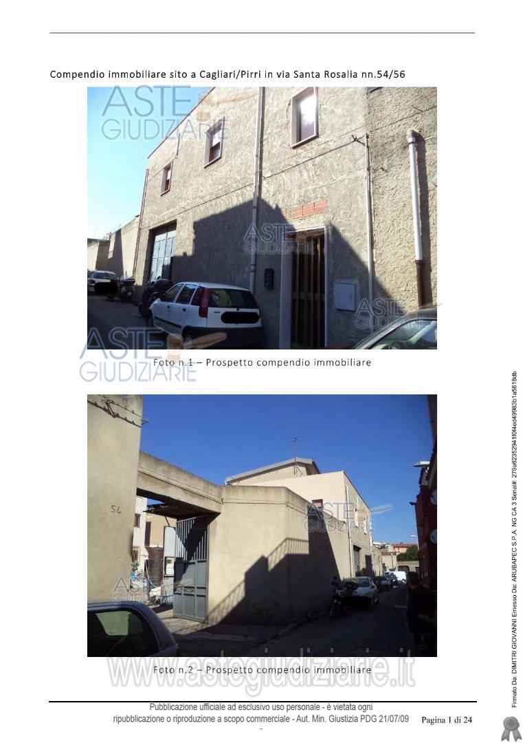 Vendita all'asta Senza incanto, con gara telematica asincrona - LOTTO 1: Cagliari-Pirri, piena proprietà dei seguenti immobili - lotto n. 1: Via Montecuccoli n. 14: locale commerciale al p.t., cat. C/1, consistenza mq 40; Via Santa Rosalia n. 54/56: compendio immobiliare ai piani S1-t, cat. C/3, consistenza mq 515; Via Santa Rosalia n. 58: appartamento al p.t., cat. A/2, consistenza 6,5 vani e appartamento non ultimato al p2, cat. A/3, consistenza 4 vani.Si rimanda alla lettura dell'ordinanza di vendita e della relazione peritale. Prezzo base € 217.600,00 (offerta minima € 163.200,00). Data inizio operazioni di vendita: 19/05/2026 ore 15:00. Giudice Gaetano Savona. Custode Giudiziario Ivg Cagliari - Email "ivg.visiteimmobili@tiscali.it"; Tel. 0702299036. Curatore Dott. Edoardo Sanna - Email "studioedoardosanna@gmail.com"; Tel. 070490790. Rif. Tribunale di Cagliari - Fallimentare n. 143/1995