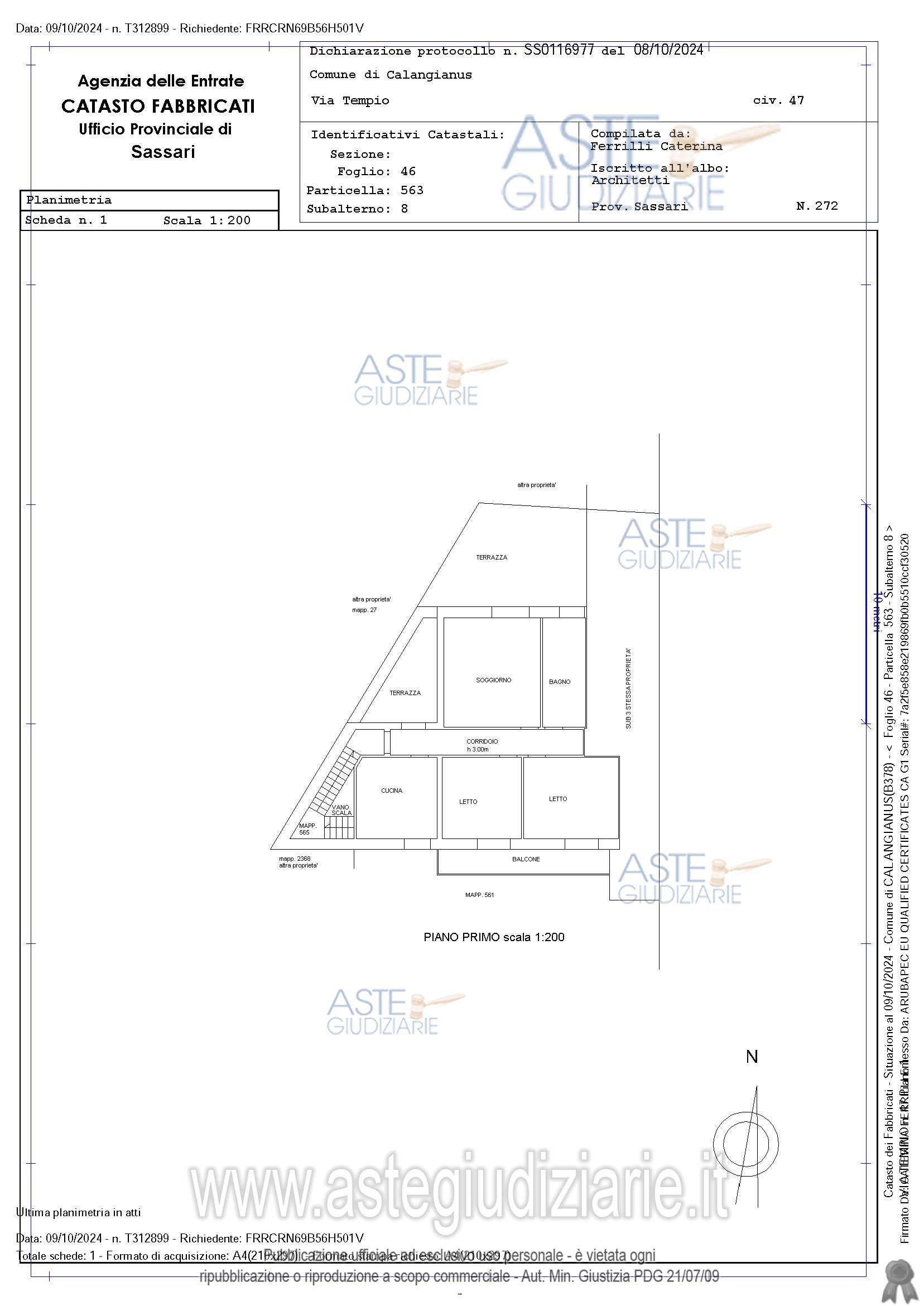 Vendita all'asta Senza incanto, con gara telematica asincrona - LOTTO 1: APPARTAMENTO SITO IN CALANGIANUS, VIA TEMPIO, N 47, P I°, DI MQ 110,95 (COMRESA TERRAZZA) DI 5 VANI. Prezzo base € 19.406,25 (offerta minima € 14.554,70). Data inizio operazioni di vendita: 31/03/2026 ore 15:30. Giudice Alessandro Di Giaco,Mo. Professionista delegato alla vendita Avv. Avv. Paola Pischedda - Email "paolapischedda@hotmail.com"; Cell. 3933358977; Tel. 07897808764. Custode Giudiziario Ivg Tempio Pausania - Email "visite.ivgtempio@hgmail.com"; Tel. 079630505. Rif. Tribunale di Tempio Pausania - Esecuzione immobiliare post legge 80 n. 241/2017