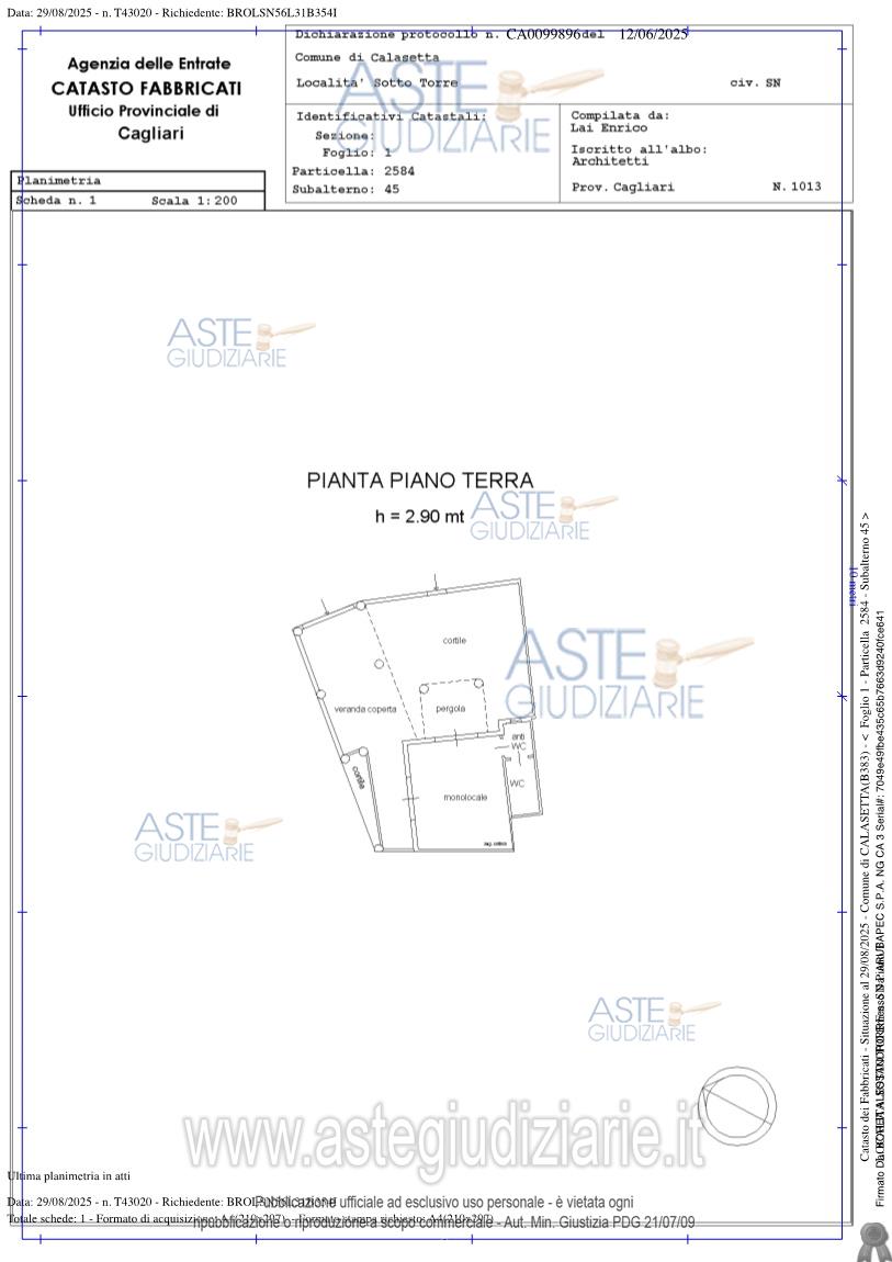 Vendita all'asta Senza incanto, con gara telematica asincrona - LOTTO 5: Calasetta, via delle Rondini, Immobile composto da due ingressi con loggiato sia sul fronte principale che quello laterale e relativa area cortilizia di pertinenza, un vano ( open space) comprende zona cottura, zona pranzo e zona letto e un bagno distinto al N.C.E.U. foglio 1 particella 2584 sub 45 Cat A/3, classe 6, 2 vani, piano T, 44 mq , R.c 118,79 . Prezzo base € 65.500,00 (offerta minima € 49.125,00). Data inizio operazioni di vendita: 28/05/2026 ore 10:00. Giudice Dott. Silvia Cocco. Professionista delegato alla vendita Avv. Daniela Marcias - Email "danymarcias@tiscali.it"; Tel. 3496116574. Custode Giudiziario Istituto Vendite Giudiziarie - Email "ivg.visiteimmobili@tiscali.it"; Tel. 0702299036. Rif. Tribunale di Cagliari - Espropriazione immobiliare (cartabia) n. 234/2024