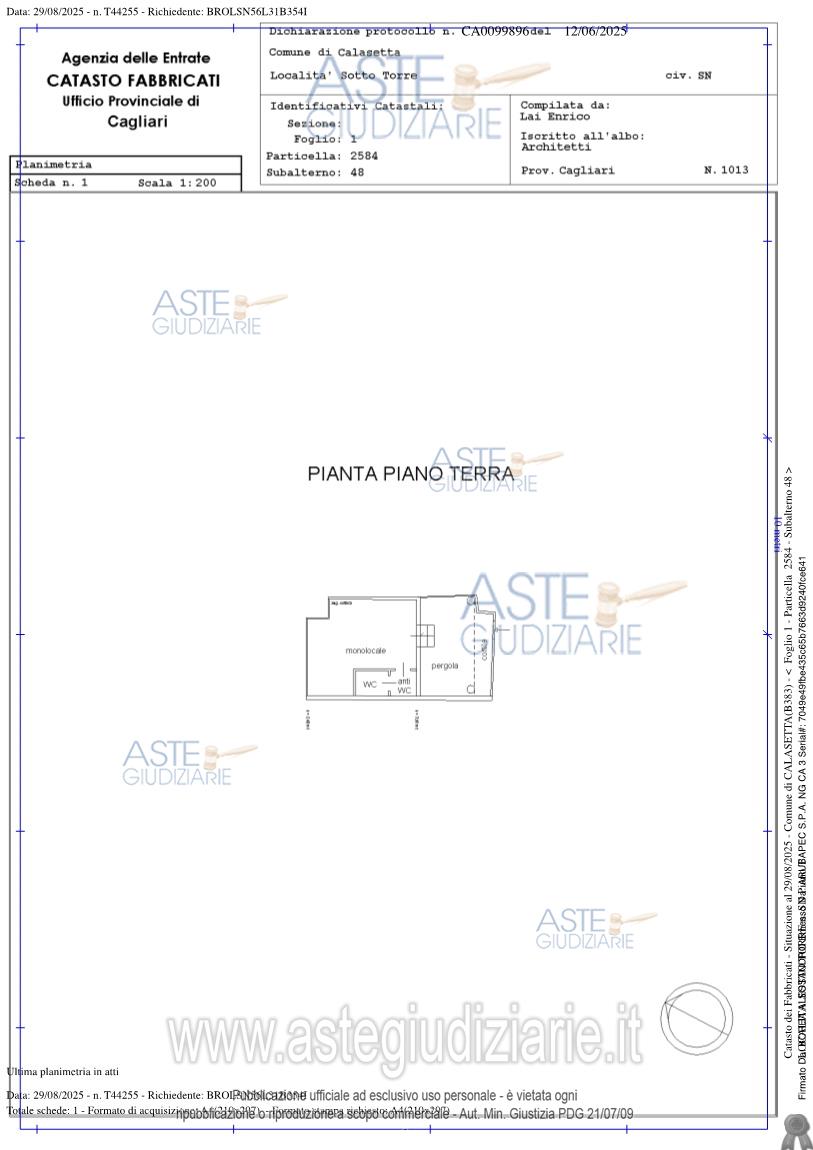 Vendita all'asta Senza incanto, con gara telematica asincrona - LOTTO 6: Calasetta, via delle Rondini, Immobile composto da loggiato d’ingresso, un vano ( open space) comprende zona cottura, zona pranzo e zona letto e un bagno distinto al N.C.E.U. foglio 1 particella 2584 sub 48 Cat A/3, classe 6, 2 vani, piano T, 31 mq , R.c 118,79. Prezzo base € 51.500,00 (offerta minima € 38.625,00). Data inizio operazioni di vendita: 28/05/2026 ore 10:00. Giudice Dott. Silvia Cocco. Professionista delegato alla vendita Avv. Daniela Marcias - Email "danymarcias@tiscali.it"; Tel. 3496116574. Custode Giudiziario Istituto Vendite Giudiziarie - Email "ivg.visiteimmobili@tiscali.it"; Tel. 0702299036. Rif. Tribunale di Cagliari - Espropriazione immobiliare (cartabia) n. 234/2024