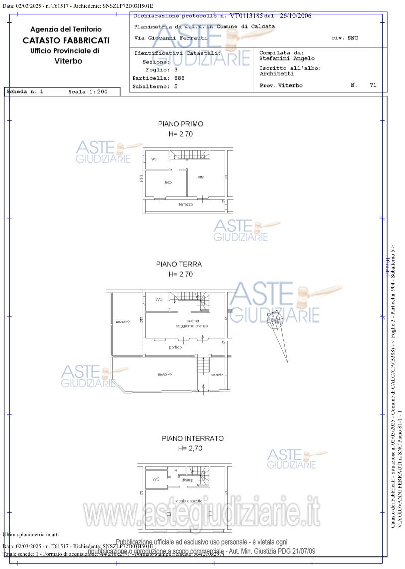 Vendita all'asta Senza incanto, con gara telematica asincrona - LOTTO 1: Villino capofila appartenente ad un complesso immobiliare a schiera costituito da quattro unità immobiliari, sito a Calcata (VT) in Via Giovanni Ferrauti n. 1/A, con entrata indipendente e annesso . Prezzo base € 80.125,00 (offerta minima € 60.093,75). Data inizio operazioni di vendita: 27/05/2026 ore 10:00. Giudice Federico Bonato. Professionista delegato alla vendita Dott. Stefano Tedeschi - Email "studiostefanotedeschi@gmail.com"; Cell. 3338915305. Custode Giudiziario Dott. Stefano Tedeschi - Email "studiostefanotedeschi@gmail.com"; Cell. 3338915305. Rif. Tribunale di Viterbo - Espropriazione immobiliare (cartabia) n. 91/2024
