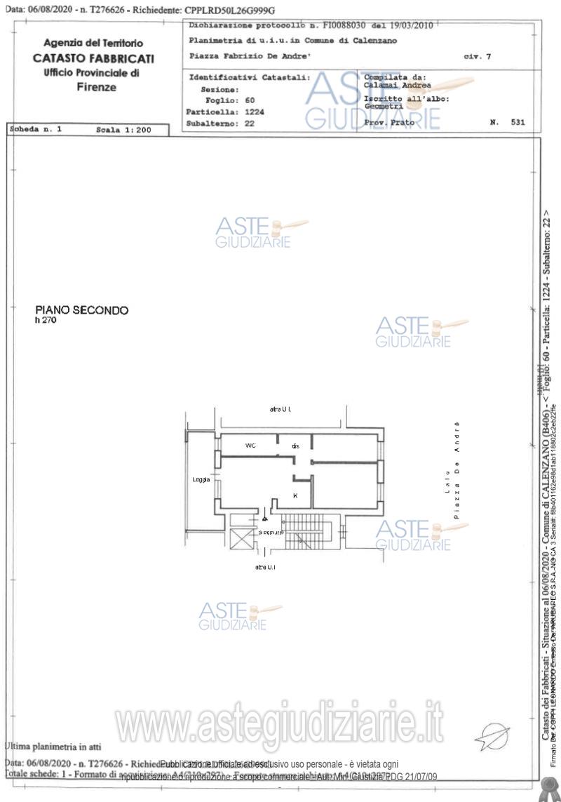 Vendita all'asta Competitiva - LOTTO 2: LOTTO B: appartamento in Calenzano, Piazza De Andrè n. 7, al piano secondo e composto da soggiorno con angolo cottura, disimpegno, bagno, due camere e terrazzo a loggia. E' di pertinenza una autorimessa posta al piano seminterrato. L'offerente dovrà dichiarare di possedere i requisiti richiesti per i beneficiari degli alloggi di edilizia agevolata. Prendere visione dei documenti pubblicati. Si rende noto che la procedura ha già ricevuto un'offerta irrevocabile di acquisto. Prezzo base € 142.125,00 (offerta minima € 142.125,00). Data vendita 14/05/2026 ore 10:00. Giudice Dott. Enrico Capanna. Professionista delegato alla vendita Not. Laura Biagioli - Email "studio@notaiobiagioli.it"; Tel. 0574592532. Curatore Stefano Conti - Email "dott.conti@studioccpf.it"; Tel. 0574564993. Rif. Tribunale di Prato - Fallimentare (nuovo rito) n. 24/2020