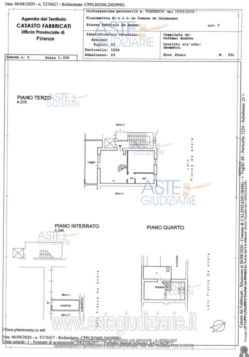 Vendita all'asta Competitiva - LOTTO 3: LOTTO C: appartamento in Calenzano Piazza De Andrè n. 7, composto al piano terzo, da soggiorno con angolo cottura, disimpegno, bagno, camera e terrazzo a loggia; al piano quarto da un vano sottotetto oltre terrazzo a lastrico. Sono di pertinenza un'autorimessa e una cantina al piano seminterrato. L'offerente dovrà dichiarare di possedere i requisiti richiesti per i beneficiari degli alloggi di edilizia agevolata. Prendere visione dei documenti pubblicati. La procedura ha già ricevuto un'offerta di acquisto. Prezzo base € 129.675,00 (offerta minima € 129.675,00). Data vendita 14/05/2026 ore 10:00. Giudice Dott. Enrico Capanna. Professionista delegato alla vendita Not. Laura Biagioli - Email "studio@notaiobiagioli.it"; Tel. 0574592532. Curatore Stefano Conti - Email "dott.conti@studioccpf.it"; Tel. 0574564993. Rif. Tribunale di Prato - Fallimentare (nuovo rito) n. 24/2020