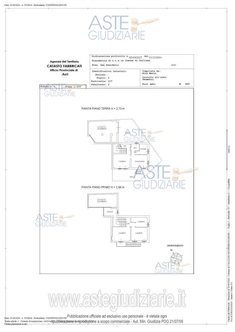 Vendita all'asta Senza incanto, con gara telematica asincrona - LOTTO UNICO: Fabbricato abitativo a due piani fuori terra con relativi fabbricati accessori in parte ad un piano fuori terra ed in parte a due piani fuori terra ubicati in Calliano nella Frazione San Desiderio. . Prezzo base € 43.475,00 (offerta minima € 32.606,25). Data inizio operazioni di vendita: 10/04/2026 ore 15:30. Giudice Edoardo Gaspari. Professionista delegato alla vendita Avv. Franco Bussi - Email "f.bussi@studiolegalebussi.it"; Tel. 0161701034. Custode Giudiziario Avv. Franco Bussi - Email "f.bussi@studiolegalebussi.it"; Tel. 0161701034. Rif. Tribunale di Vercelli - Espropriazione immobiliare (cartabia) n. 100/2024