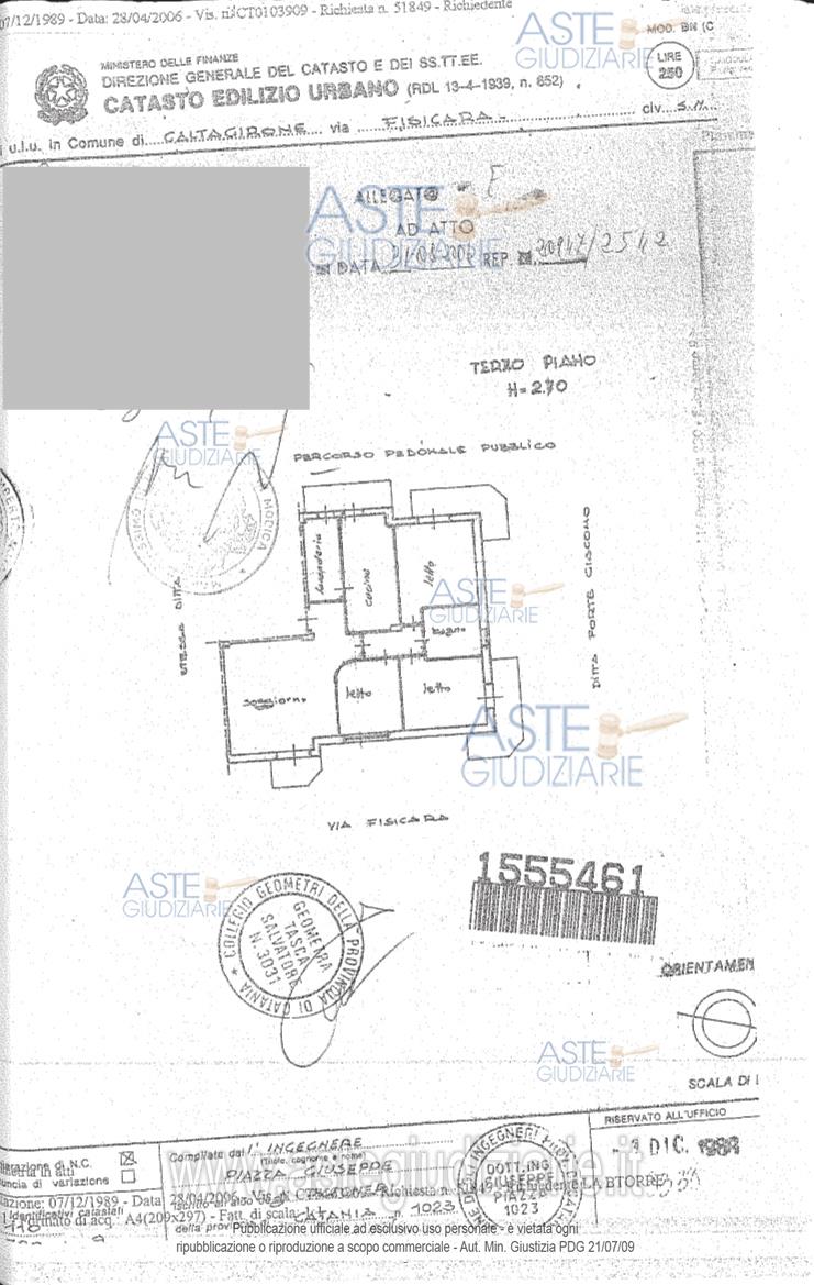 Vendita all'asta Senza incanto, con gara telematica sincrona mista - LOTTO UNICO: Appartamento composto da un vano soggiorno, cucina, tre vani letto e bagno. Rifiniture di buona fattura: pavimenti in ceramica, pareti intonacate e tinteggiate, infissi interni in legno ed esterni in alluminio con avvolgibili; bagno completo di sanitari e rivestimento di ceramica; impianto elettrico sottotraccia e riscaldamento autonomo, allo stato privo di caldaia. Superficie lorda mq.105,00, superficie calpestabile mq.90,00, oltre aree scoperte mq.21,00 (ballatoi). Prezzo base € 55.480,00 (offerta minima € 41.610,00). Data vendita 18/02/2026 ore 17:00. Professionista delegato alla vendita Avv. Mariagrazia Conti - Email "avv.mariagraziaconti@tiscali.it"; Cell. 3381132664; Tel. 093321513. Custode Giudiziario Avv. Mariagrazia Conti - Email "avv.mariagraziaconti@tiscali.it"; Cell. 3381132664; Tel. 093321513. Rif. Tribunale di Caltagirone - Esecuzione immobiliare post legge 80 n. 67/2023