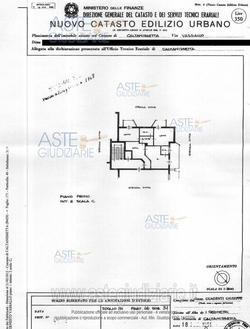 Vendita all'asta Senza incanto, con gara telematica sincrona mista - LOTTO 2: Appartamento per civile abitazione al piano primo, composto da tre vani ed accessori. Prezzo base € 27.515,00 (offerta minima € 20.637,00). Data vendita 19/06/2026 ore 10:30. Giudice Dott. Francesco Lauricella. Professionista delegato alla vendita Not. Giulia Seminatore. Custode Giudiziario Not. Giulia Seminatore - Email "gseminatore@notariato.it". Rif. Tribunale di Caltanissetta - Esecuzione immobiliare post legge 80 n. 43/2011