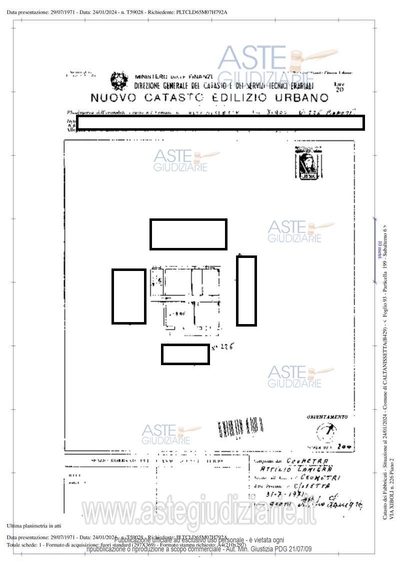 Vendita all'asta Senza incanto, con gara telematica sincrona mista - LOTTO 1: Piena proprietà di un immobile sito a Caltanissetta via Xiboli n. 200 piano secondo . E' composto da soggiorno, due vani, cucina, bagno, ripostiglio e corridoio. Nella proprietà è compresa la proporzionale quota di comproprietà su parti, luoghi, enti ed impianti del fabbricato, comuni ai sensi di legge. Prezzo base € 11.675,00 (offerta minima € 8.757,00). Data vendita 11/02/2026 ore 16:30. Professionista delegato alla vendita Avv. Aldo Bellomo. Custode Giudiziario Avv. Aldo Bellomo - Email "bellomoaldo@gmail.com"; Cell. 3402619737; Tel. 0934563102. Rif. Tribunale di Caltanissetta - Espropriazione immobiliare (cartabia) n. 86/2023