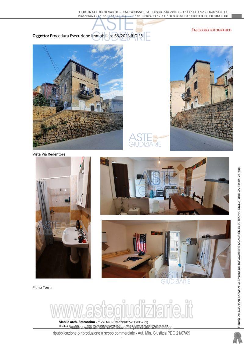 Vendita all'asta Senza incanto, con gara telematica sincrona mista - LOTTO UNICO: L’immobile è ubicato nella zona storica dell'abitato di Caltanissetta, si sviluppa su tre livellifuori terra ed era caratterizzata da un ingresso indipendente. Ubicata nel centro storico delComune di Caltanissetta, con ingresso prospiciente un sovrapassaggio prospiciente ViaRedentore con difformità edilizie che a seguito si specificheranno. Trattasi di un edificiocostituito da un piano terra, un piano primo ed un piano secondo destinati a civile abitazione.Superficie convenzionale pari a mq 77, 25. Prezzo base € 8.189,07 (offerta minima € 6.141,80). Data vendita 14/07/2026 ore 16:30. Professionista delegato alla vendita Avv. Angelo Danilo Costa. Custode Giudiziario Avv. Angelo Danilo Costa - Email "danilo.costa@paralegale.it". Rif. Tribunale di Caltanissetta - Esecuzione immobiliare post legge 80 n. 68/2023