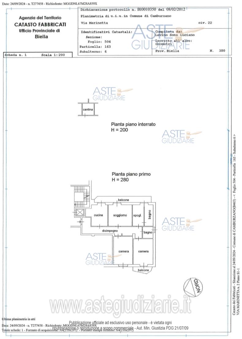 Vendita all'asta Senza incanto, con gara telematica asincrona - LOTTO UNICO: Alloggio al piano primo con pertinenti cantina e autorimessa. Prezzo base € 26.662,50 (offerta minima € 19.996,88). Data inizio operazioni di vendita: 24/02/2026 ore 16:15. Giudice Emanuele Migliore. Professionista delegato alla vendita Avv. Barbara Mazzanti - Email "info@centroasteimmobiliari.it"; Tel. 0150991500. Custode Giudiziario Avv. Barbara Mazzanti - Email "info@centroasteimmobiliari.it"; Tel. 0150991500. Rif. Tribunale di Biella - Espropriazione immobiliare (cartabia) n. 70/2024