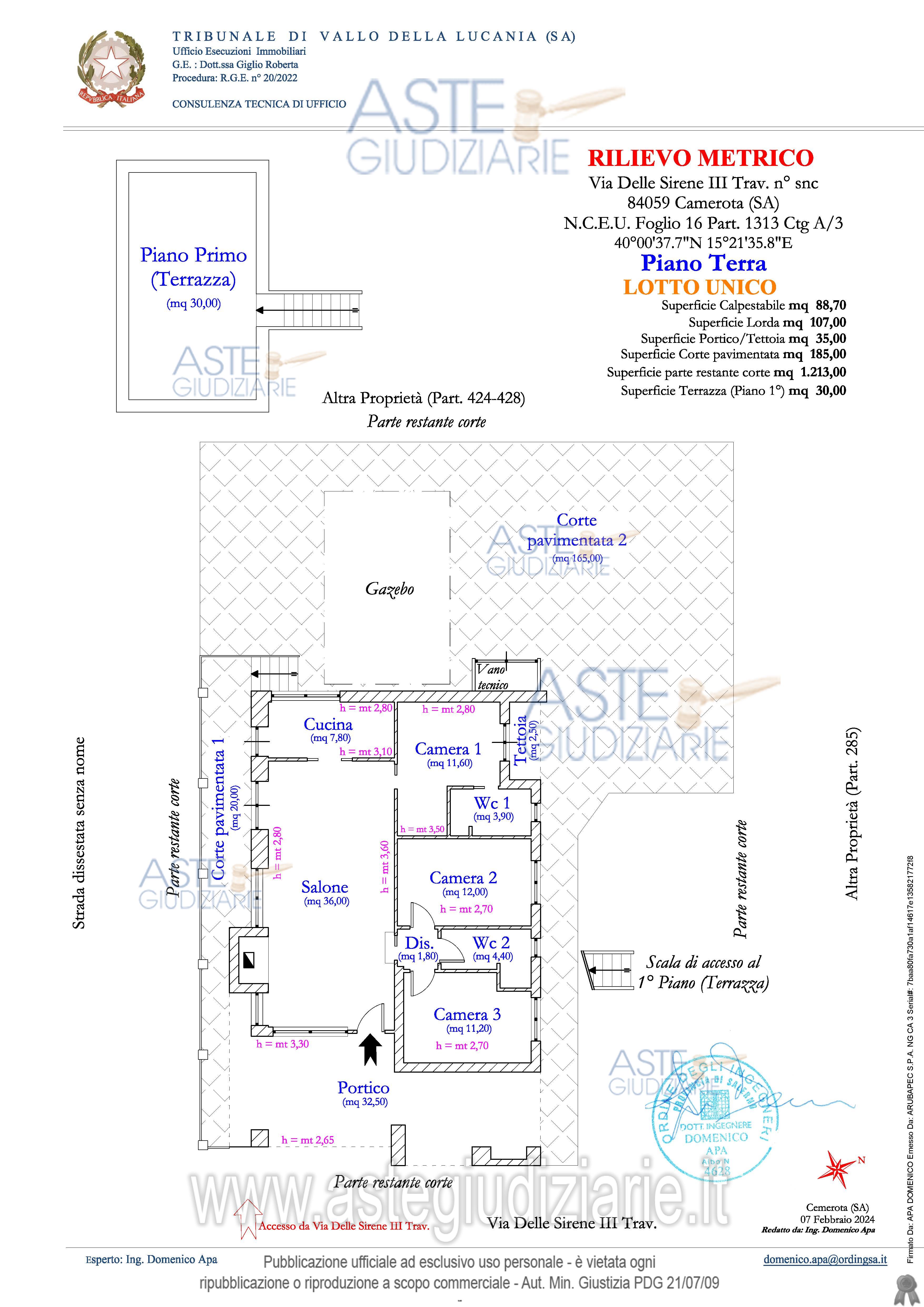 Vendita all'asta Senza incanto, con gara telematica asincrona - LOTTO UNICO: Fabbricato agricolo adibito a villa con corte, composto da un unico livello con superficie calpestabile pari a mq 88,70 suddiviso in un salone, una cucina, n. 3 camere, n. 2 wc e un disimpegno. Prezzo base € 171.000,00 (offerta minima € 128.250,00). Data inizio operazioni di vendita: 24/03/2026 ore 11:00. Giudice Dott. Roberta Giglio. Professionista delegato alla vendita Dott. Pietro Di Lorenzo - Email "pietro-dilorenzo@outlook.it"; Cell. 3356257919; Tel. 0815751434. Custode Giudiziario Dott. Pietro Di Lorenzo - Email "pietro-dilorenzo@outlook.it"; Cell. 3356257919; Tel. 0815751434. Rif. Tribunale di Vallo della Lucania - Esecuzione immobiliare post legge 80 n. 20/2022