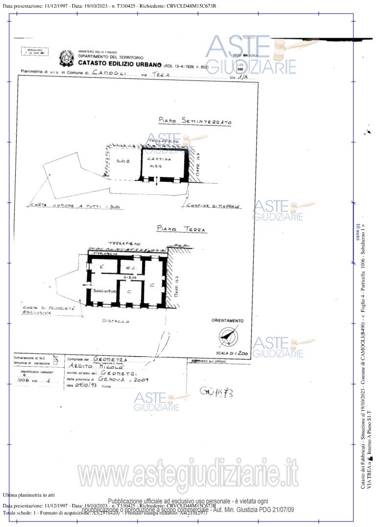 Vendita all'asta Senza incanto, con gara telematica sincrona mista - LOTTO 01: LOTTI 1 e 2 in Comune di Camogli (GE), Via (località) Trea: a) appartamento civico 1, interno A, facente di edificio bifamiliare, posto al piano terra, composto da: cucina, ingresso, bagno, due saloni, con annessa cantina posta al piano seminterrato e con corte esclusiva di proprietà ubicata sul fronte ovest; b) magazzino posto su due piani - intercluso, ubicato all'interno di terreno di terzi contraddistinto dal mappale 1036 - completamente demolito, salvo modesta porzione di palizzata perimetrale. Prezzo base € 47.524,64 (offerta minima € 35.643,48). Data vendita 30/01/2026 ore 15:00. Giudice Dott. Daniele Bianchi. Professionista delegato alla vendita Avv. Davide Giuseppe Tonnicchi - Email "davide.tonnicchi@sla-ap.it"; Tel. 010541263. Custode Giudiziario Sovemo Srl - Email "immobiliare@sovemo.com"; Tel. 0105299253. Rif. Tribunale di Genova - Esecuzione immobiliare post legge 80 n. 98/2023