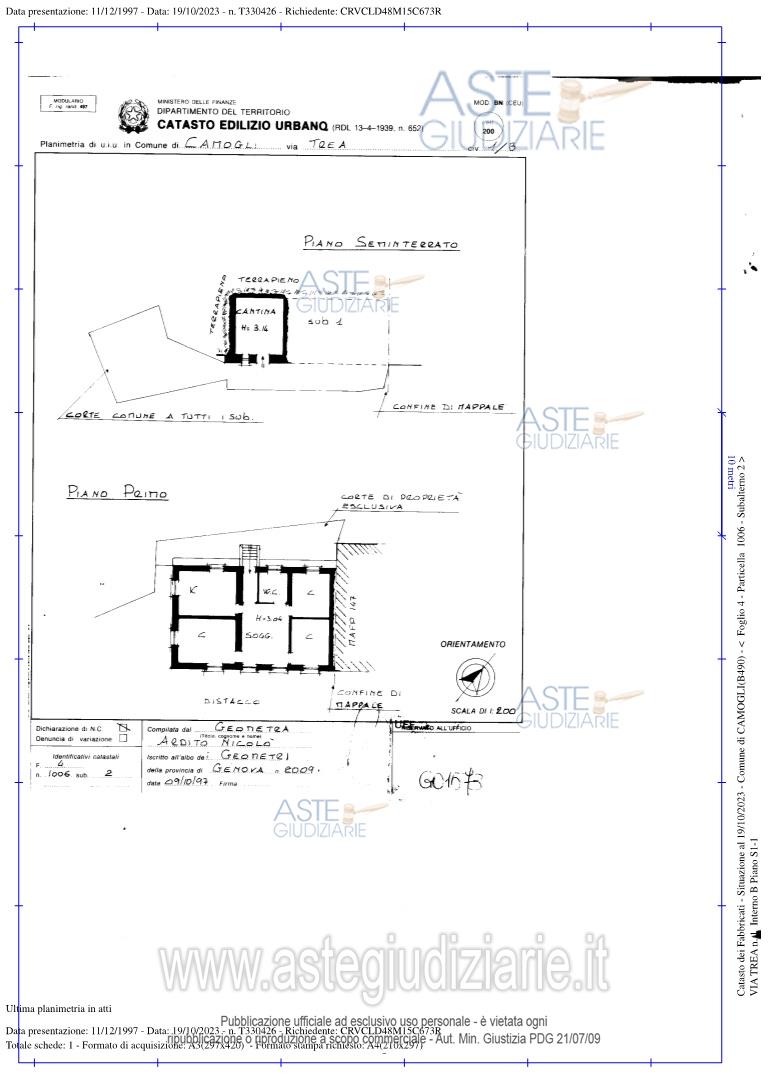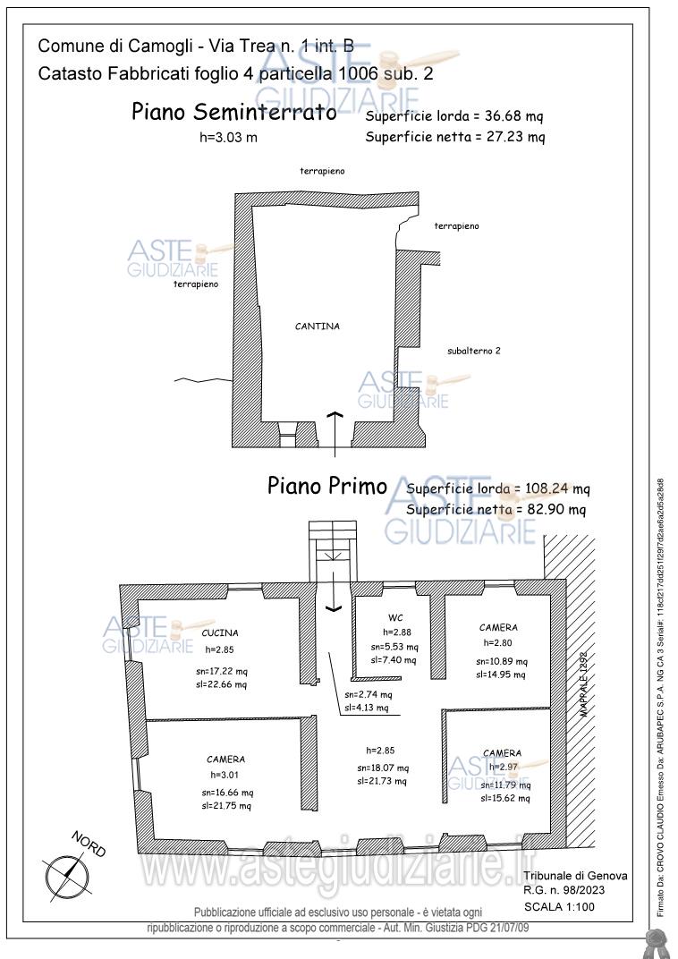 Vendita all'asta Senza incanto, con gara telematica sincrona mista - LOTTO 02: In Comune di Camogli (GE), Via (località) Trea, civico 1, interno B, appartamento facente di edificio bifamiliare, posto al piano primo, composto da: ingresso, cucina, tre camere, soggiorno, bagno, con annessa cantina posta al piano seminterrato e con corte esclusiva di proprietà ubicata sul fronte nord-ovest. Prezzo base € 41.690,07 (offerta minima € 31.267,55). Data vendita 29/04/2026 ore 16:00. Giudice Daniele Bianchi. Professionista delegato alla vendita Avv. Davide Giuseppe Tonnicchi - Email "davide.tonnicchi@sla-ap.it"; Tel. 010541263. Custode Giudiziario Dott. Sovemo Srl - Email "immobiliare@sovemo.com"; Tel. 0105299253. Rif. Tribunale di Genova - Esecuzione immobiliare post legge 80 n. 98/2023