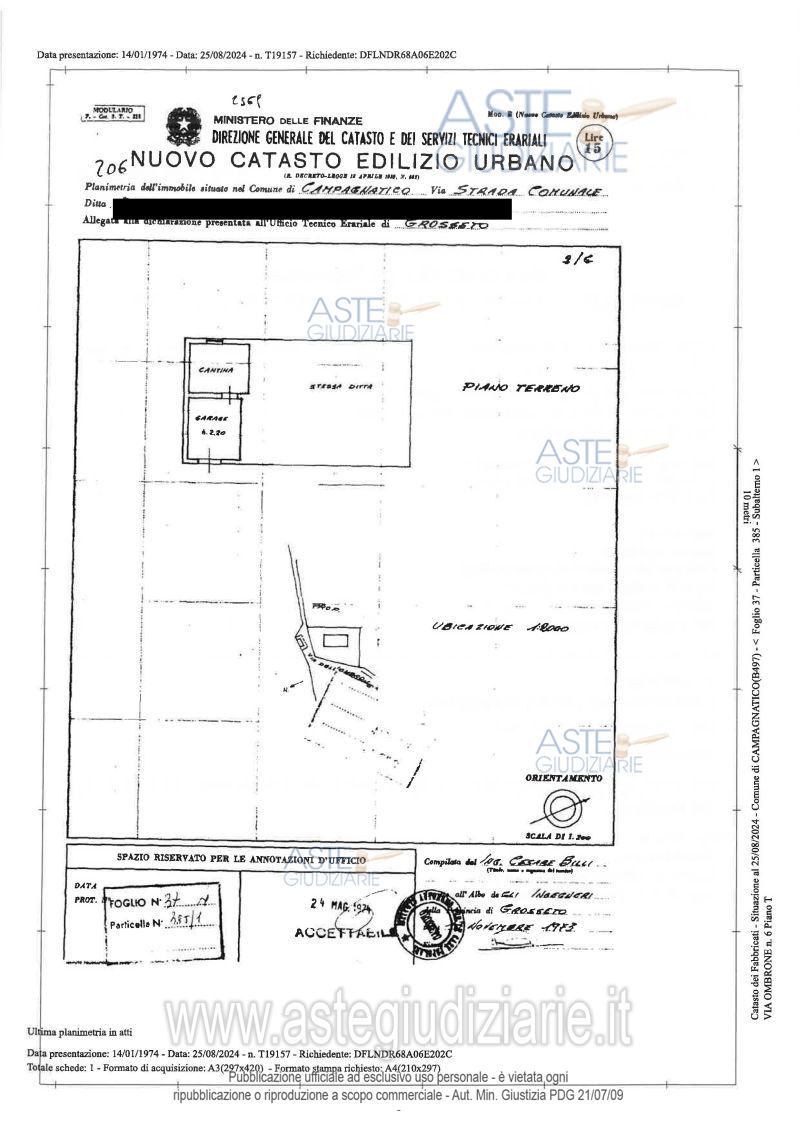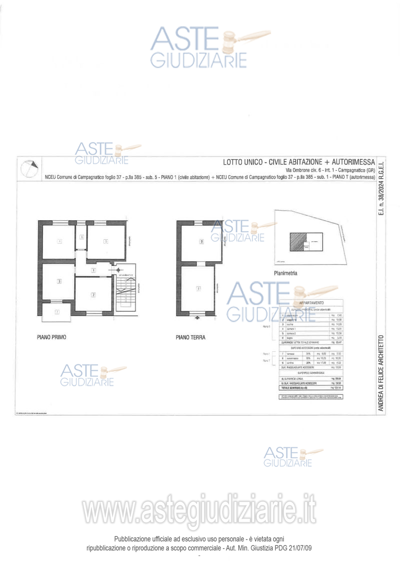 Vendita all'asta Senza incanto, con gara telematica asincrona - LOTTO UNICO: Quota pari a 1/1 del diritto di piena proprietà dell’intero immobile adibito a civile abitazione corredata di autorimessa, sito in Campagnatico (Gr), Via Ombrone n. 6, interno 1. LOTTO UNICO censito come segue: NCEU Comune di Campagnatico: - foglio 37, p.lla 385, sub 5, cat. A4, classe 2, vani 5 - rendita € 258,23 – PIANO 1 (abitazione); - foglio 37, p.lla 385, sub 1, cat. C6, classe 2, mq 43 - rendita € 84,39 – PIANO T (autorimessa). Coerenze ABITAZIONE: sub 6 Coerenze AUTORIMESSA: sub 2 . Prezzo base € 49.000,00 (offerta minima € 36.750,00). Data inizio operazioni di vendita: 23/06/2026 ore 11:00. Giudice Cristina Nicolo'. Professionista delegato alla vendita Dott. Claudia Coli - Email "claudiacoli81@gmail.com"; Tel. 0564416557. Custode Giudiziario Istituto Vendite Giudiziarie Srl - Email "ivggrosseto@astagiudiziaria.com"; Cell. 3426598791. Rif. Tribunale di Grosseto - Esecuzione immobiliare post legge 80 n. 38/2024