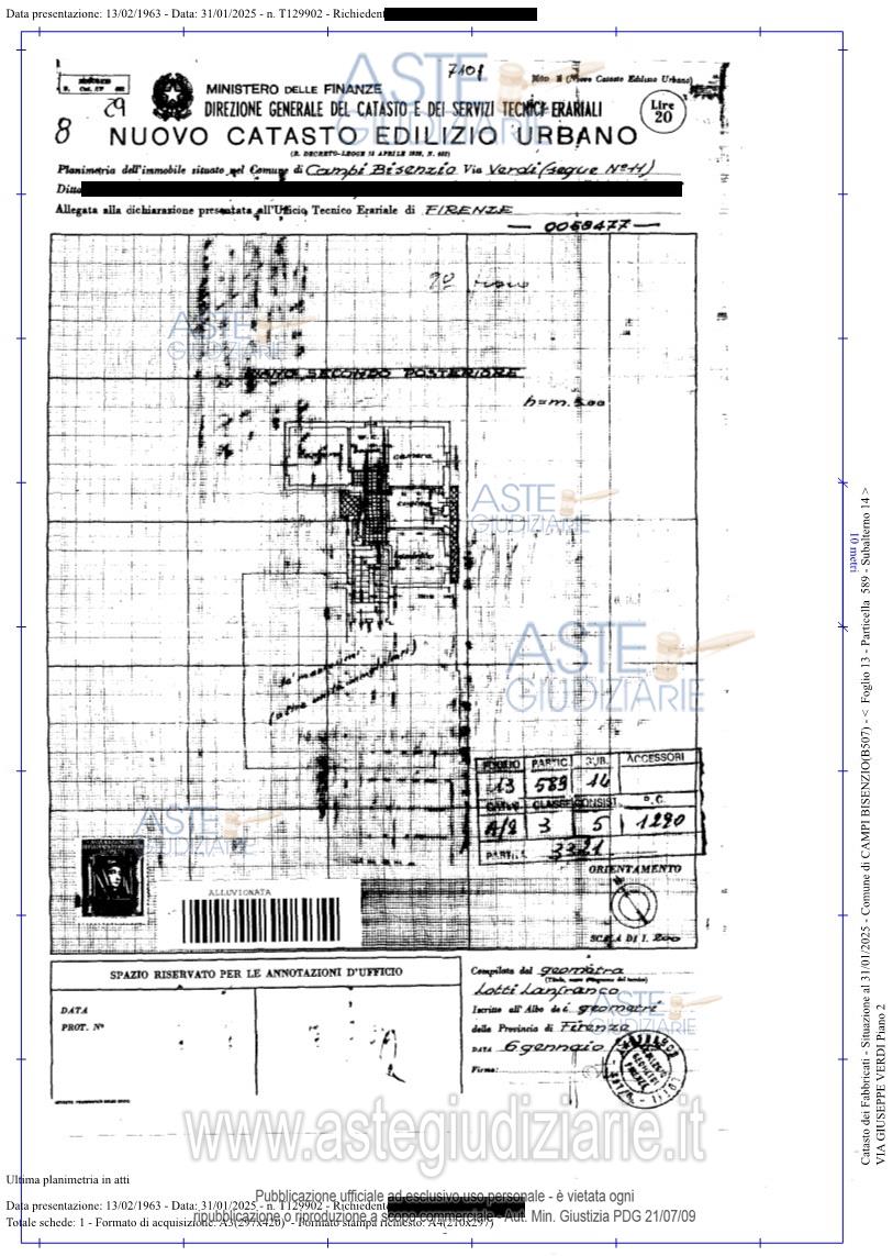 Vendita in attesa dell'emissione del nuovo bando d'asta. LOTTO 1: Appartamento ad uso residenziale posto al piano secondo posteriore dello stabile in Campi Bisenzio (FI) — Via Montalvo n° 21 (già n° 19), composto da soggiorno con annesso vano cucina, due camere, bagno, disimpegno, terrazza prospiciente il passaggio laterale, loggia verandata da cui si accede a un ripostiglio, oltre garage posto al piano terreno posteriore dello stabile condominiale. Ultimo prezzo base € 252.000,00 (offerta minima € 252.000,00). Giudice Elisabetta Donelli. Curatore Dott. Andrea Taddei - Email "andreataddei@studioprofessionaleft.it"; Tel. 05741597767. Rif. Tribunale di Prato - Liquidazione giudiziale(cci) n. 35/2024