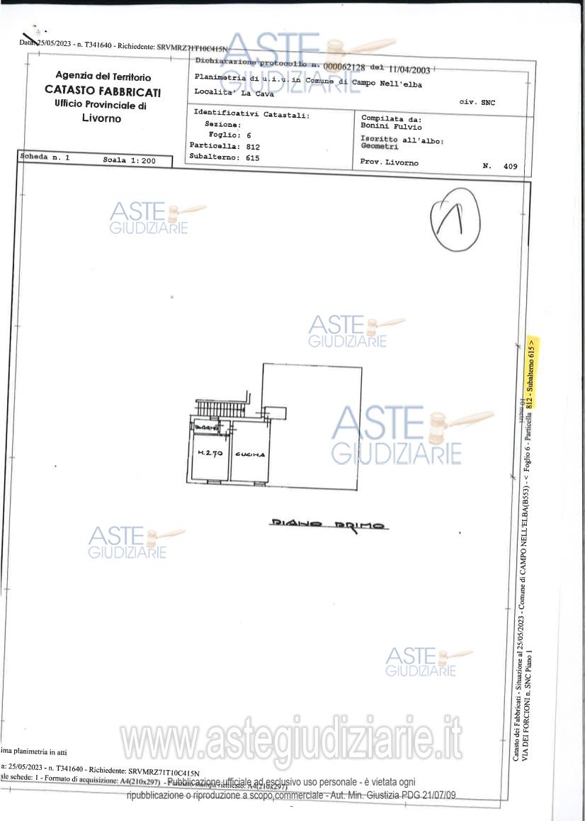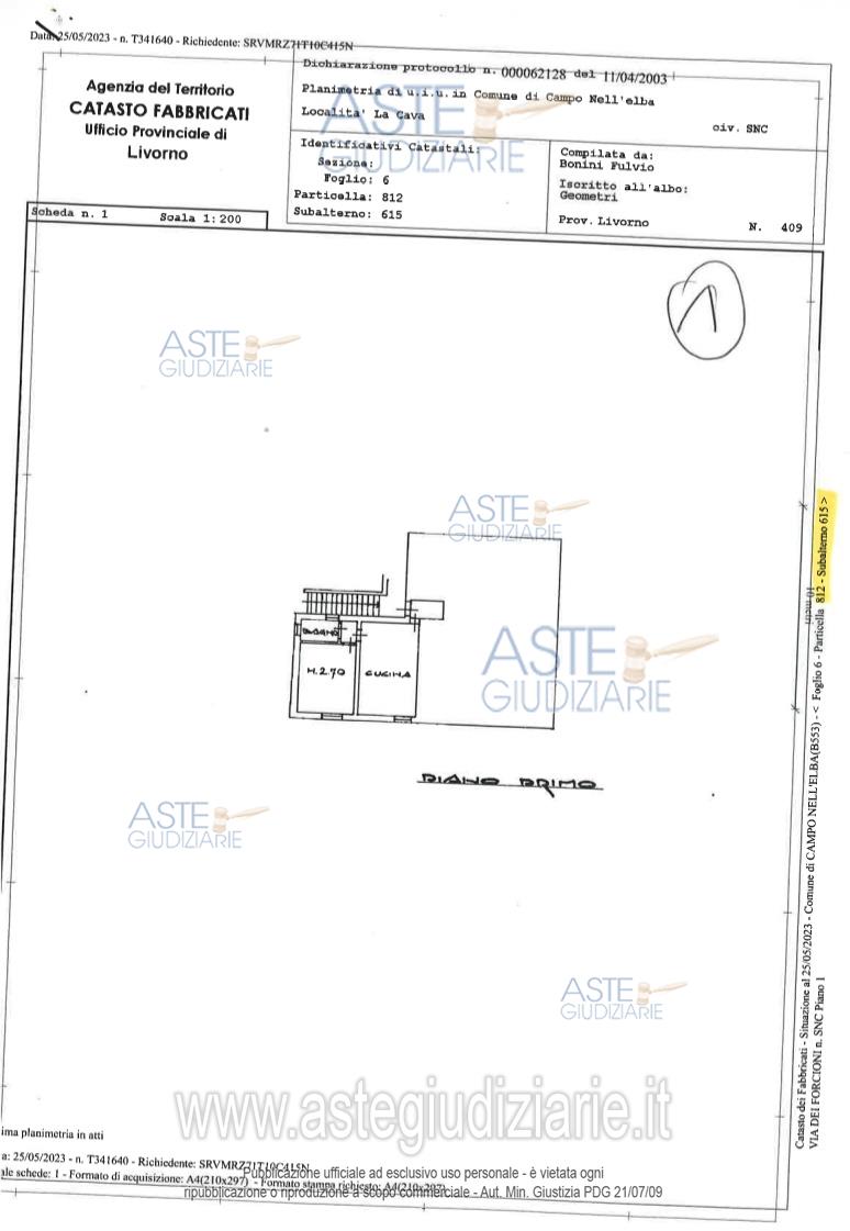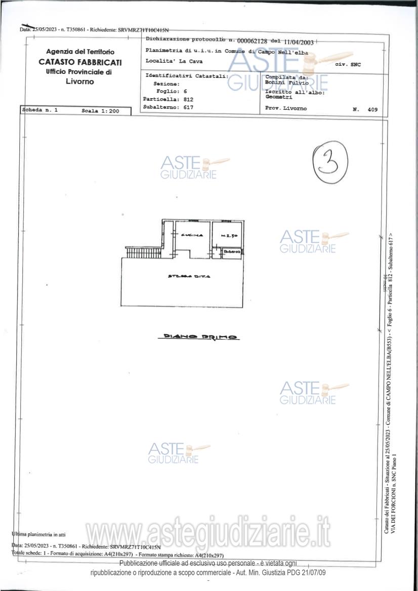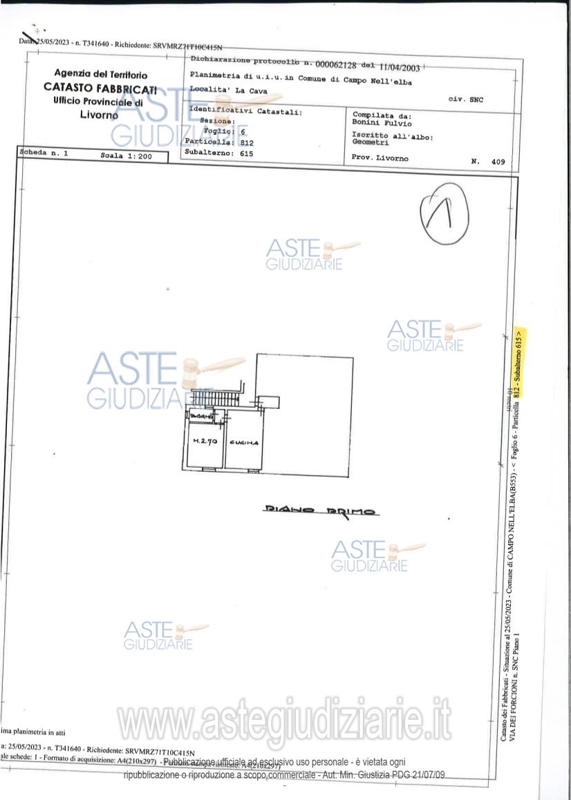 Vendita all'asta Senza incanto, con gara telematica asincrona - LOTTO 1: Appartamento per civile abitazione, posto al piano primo, con accesso tramite corte e vano scale esterno a comune, disimpegno al piano, composto da soggiorno con zona cottura, disimpegno, bagno e camera; pavimenti, rivestimenti, sanitari e rubinetterie, porte e maniglie tutti datati, finiture di scarsa qualità, taglio interno dei locali ben distribuito, affaccio su aree libere di campagna o su distacco da altre abitazioni. Prezzo base € 72.000,00 (offerta minima € 54.000,00). Data inizio operazioni di vendita: 22/10/2025 ore 12:00. Giudice Simona Capurso. Professionista delegato alla vendita Avv. Alessandro Massarelli. Custode Giudiziario Avv. Alessandro Massarelli - Email "masslex@elba2000.it"; Tel. 0565915016. Rif. Tribunale di Livorno - Esecuzione immobiliare post legge 80 n. 208/2022