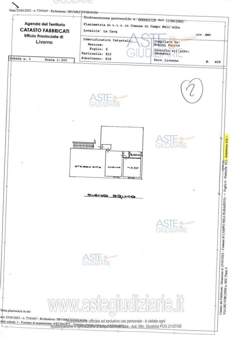 Vendita all'asta Senza incanto, con gara telematica asincrona - LOTTO 2: Appartamento per civile abitazione, posto al piano primo, con accesso tramite corte e vano scale esterno a comune, disimpegno al piano, composto da soggiorno con zona cottura, disimpegno, bagno e camera; pavimenti, rivestimenti, sanitari e rubinetterie, porte e maniglie tutti datati, finiture di scarsa qualità, taglio interno dei locali ben distribuito, affaccio su aree libere di campagna o su distacco da altre abitazioni. Prezzo base € 78.000,00 (offerta minima € 58.500,00). Data inizio operazioni di vendita: 22/10/2025 ore 12:00. Giudice Simona Capurso. Professionista delegato alla vendita Avv. Alessandro Massarelli. Custode Giudiziario Avv. Alessandro Massarelli - Email "masslex@elba2000.it"; Tel. 0565915016. Rif. Tribunale di Livorno - Esecuzione immobiliare post legge 80 n. 208/2022