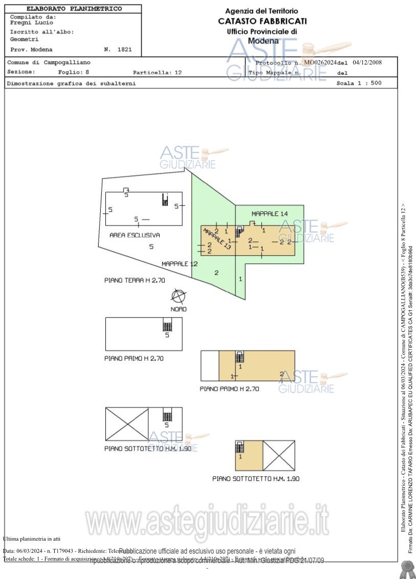 Vendita all'asta Senza incanto, con gara telematica asincrona - LOTTO UNICO: Piena ed esclusiva proprietà di complesso immobiliare sito nel comune di Campogalliano (MO), Via Cristina n°8, costituito da fabbricato ad uso civile abitazione con magazzini-cantine con terreno circostante e disposto su più livelli collegati da scala interna, con ingresso da portico comune e con parte abitativa a piano terra. Nella parte ovest del fabbricato, con accesso dall’esterno vi sono tre cantine (di fronte all’edificio adiacente). Prezzo base € 69.000,00 (offerta minima € 51.750,00). Data inizio operazioni di vendita: 19/03/2026 ore 11:00. Professionista delegato alla vendita Dott. Luca Menetti - Email "lucamenetti@libero.it"; Cell. 3405815399. Custode Giudiziario Alex Manelli - Email "visiteimmobili@ivgmodena.it"; Tel. 059847301. Rif. Tribunale di Modena - Esecuzione immobiliare post legge 80 n. 6/2023