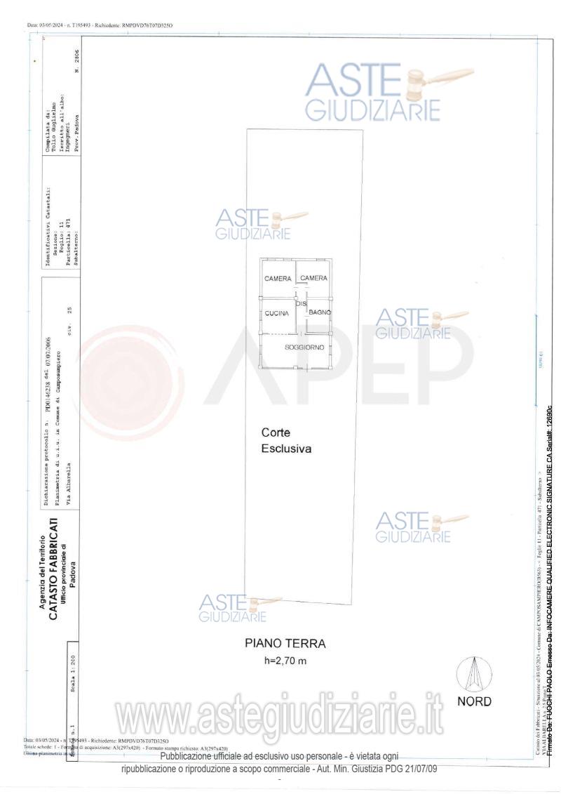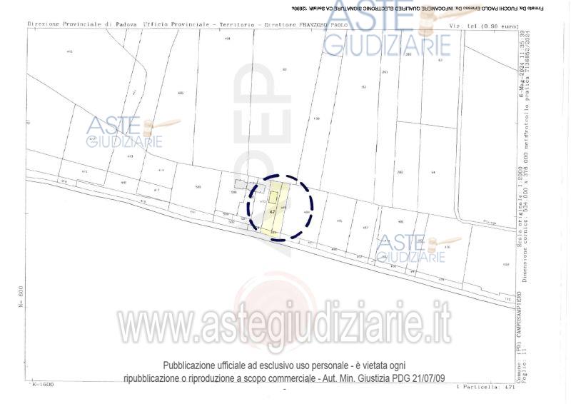 Vendita all'asta Senza incanto, con gara telematica sincrona - LOTTO UNICO: Lotto Unico - piena proprietà di fabbricato unifamiliare sito in Comune di Camposampiero (PD), Via Albarella n. 25/B, fronteggiante l'argine del corso d'acqua "Muson Vecchio", abitazione singola così disposta: al piano terra, adibito a zona giorno, composto da ingresso, soggiorno, cucina, bagno, lavanderia e camera; al piano primo, impropriamente adibito a zona notte, suddiviso in tre camere e bagno; area coperta e scoperta di pertinenza di mq. 1.235, per una superficie di mq. 132. Occupato dal debitore. Prezzo base € 117.000,00 (offerta minima € 87.750,00). Data vendita 22/01/2026 ore 15:00. Giudice Rossi. Professionista delegato alla vendita Not. Mario Caracciolo - Email "aste@apepnotai.it"; Tel. 049651228. Custode Giudiziario Apep - Email "visita@apepnotai.it"; Tel. 049651228. Rif. Tribunale di Padova - Espropriazione immobiliare (cartabia) n. 88/2024