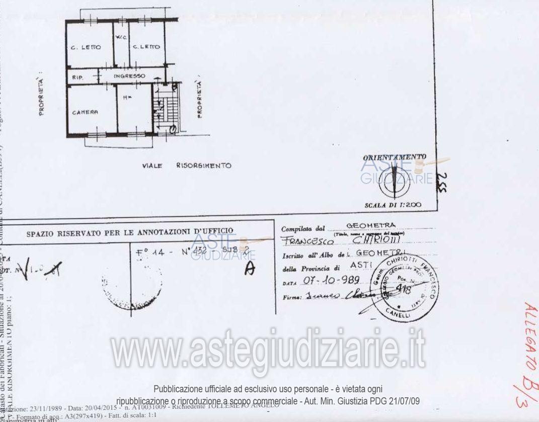Vendita all'asta Senza incanto, con gara telematica asincrona - LOTTO 1: Lotto A - Piena proprietà per intera quota su unità immobiliare ad uso abitativo (appartamento), sita al piano primo di un più ampio fabbricato composta da: ingresso-disimpegno, tre camere, cucina, bagno, ripostiglio, balconata su fronte cortile e balcone su fronte strada. Prezzo base € 62.400,00 (offerta minima € 49.800,00). Data inizio operazioni di vendita: 28/05/2026 ore 16:30. Giudice Dott. Paola Amisano. Professionista delegato alla vendita Avv. Luca Magliano - Email "magliano@dellapianamagliano.it"; Tel. 0173362772. Custode Giudiziario Ifir Piemonte Ivg Srl - Email "richiestevisite.asti@ivgpiemonte.it"; Tel. 0114731714. Rif. Tribunale di Asti - Esecuzione immobiliare post legge 80 n. 181/2013