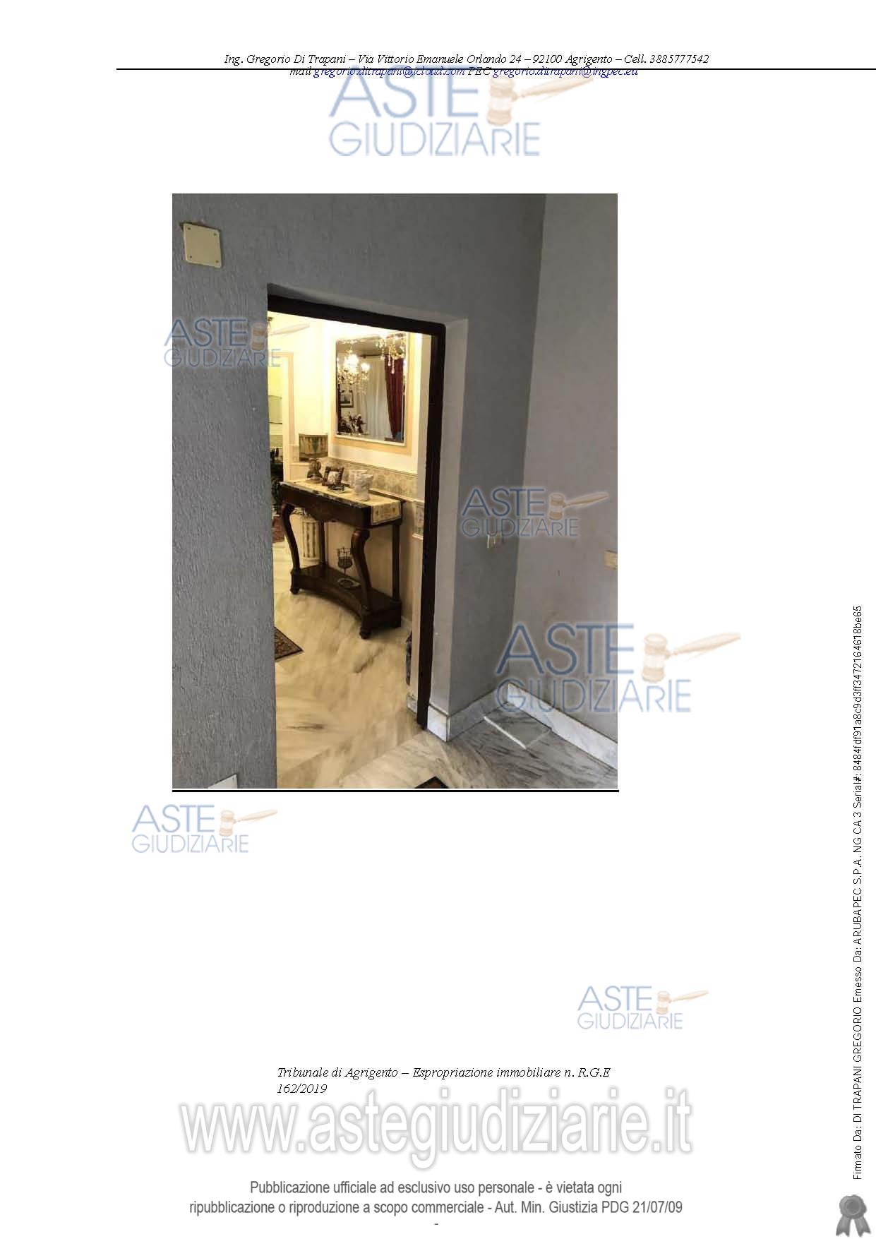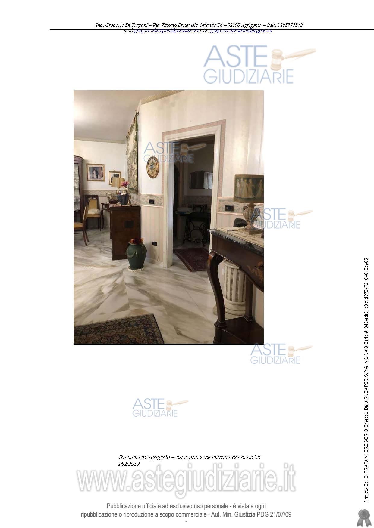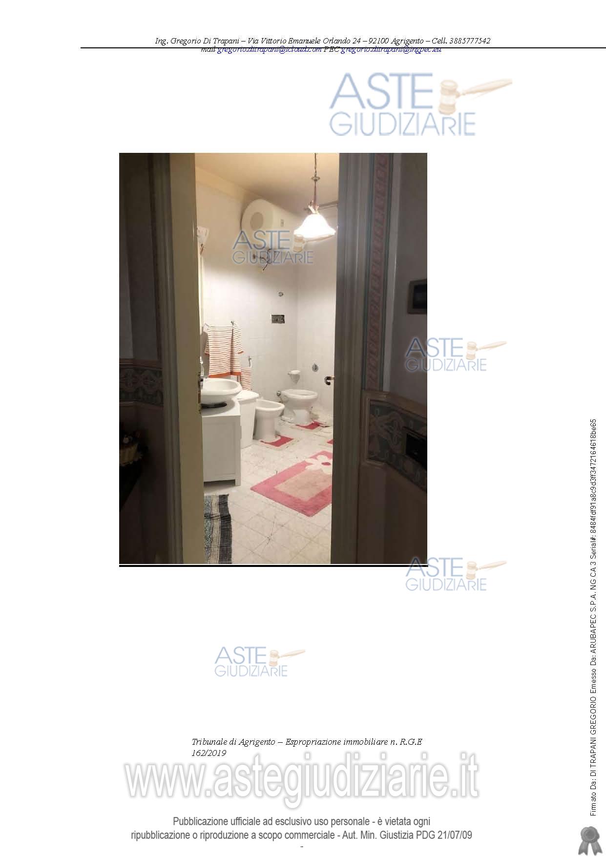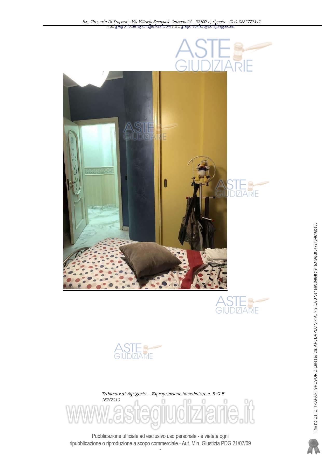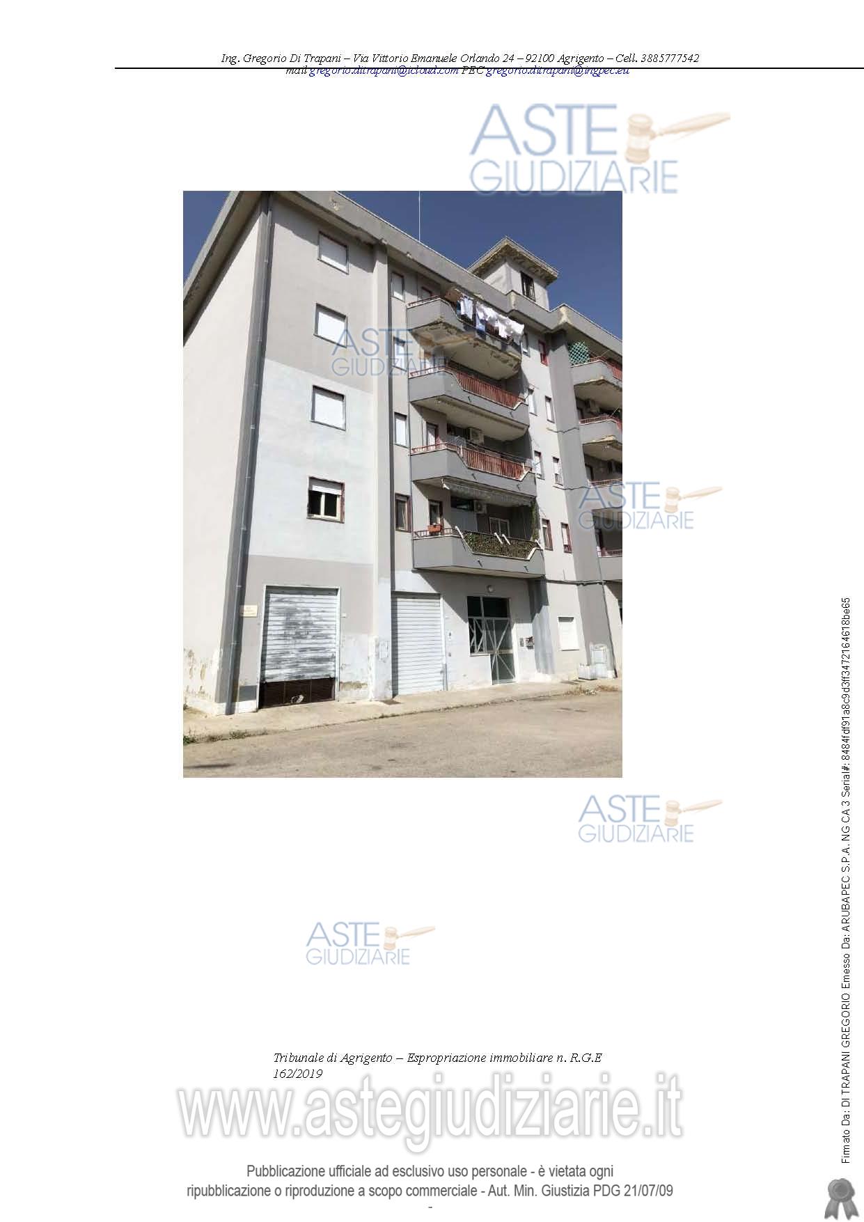 Vendita all'asta Senza incanto, con gara telematica sincrona mista - LOTTO 1: piena proprietà per la quota di 1000/1000 di appartamento sito in Canicattì (AG) in Via Regina della Pace n. 25, posto al terzo piano, della superficie commerciale di mq 130,00, identificato al catasto fabbricati al foglio 54, particella 1386 sub 61, zona censuaria 1, categoria A/3, classe 3,consistenza 7 vani, rendita 309,10 €. Prezzo base € 53.000,00 (offerta minima € 39.750,00). Data vendita 11/03/2026 ore 12:00. Giudice Domenica Maria Spano'. Professionista delegato alla vendita Avv. Flavia Di Rosa - Email "flaviadirosa@libero.it"; Cell. 3498833287; Tel. 3498833287. Custode Giudiziario Avv. Flavia Di Rosa - Email "flaviadirosa@libero.it"; Cell. 3498833287. Rif. Tribunale di Agrigento - Esecuzione immobiliare post legge 80 n. 162/2019