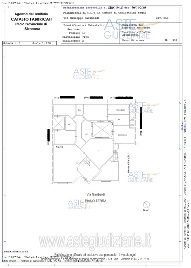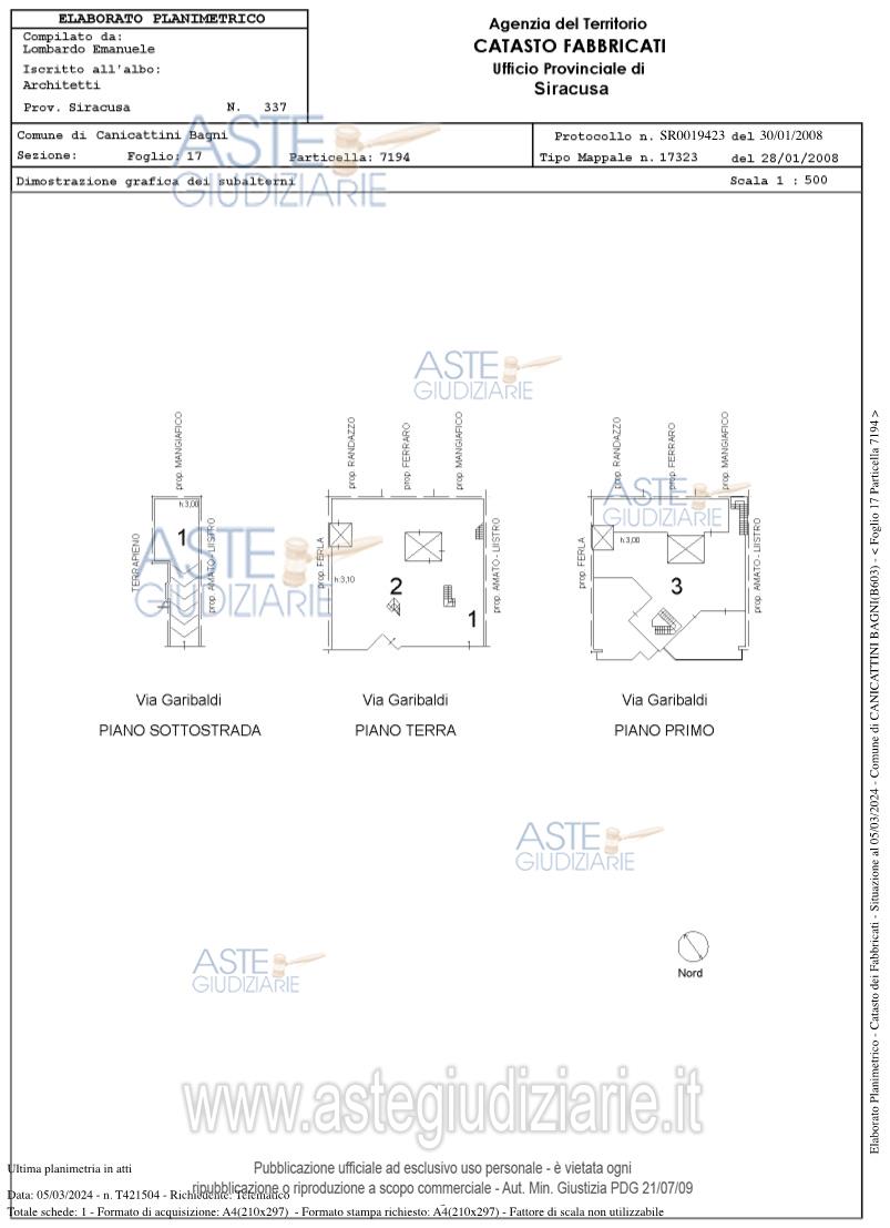 Vendita all'asta Senza incanto, con gara telematica sincrona mista - LOTTO UNICO: Piena proprietà di un immobile su due elevazioni fuori terra oltre il piano seminterrato, in Canicattini Bagni, con accesso dai civici n. 248 e 252 della Via G. Garibaldi; l’appartamento al piano terra è distinto in catasto al foglio 17, p.lla 7194 sub 2, Cat. A/2, Cl. 2, 9 vani, Piano T; il locale al piano primo è in corso di costruzione ed è distinto nel NCEU al foglio 17, p.lla 7194 sub 3, Cat. F/3, il seminterrato distinto nel NCEU al foglio 17, p.lla 7194 sub 1, Cat F/3;. Prezzo base € 395.000,00 (offerta minima € 296.250,00). Data vendita 26/06/2026 ore 09:30. Giudice Cultrera. Professionista delegato alla vendita Avv. Dario D'asaro - Email "dario.dasaro@gmail.com"; Cell. 3387072194; Tel. 0931491870. Custode Giudiziario Avv. Dario D'asaro - Email "dario.dasaro@gmail.com"; Cell. 3387072194; Tel. 0931491870. Rif. Tribunale di Siracusa - Espropriazione immobiliare (cartabia) n. 286/2023