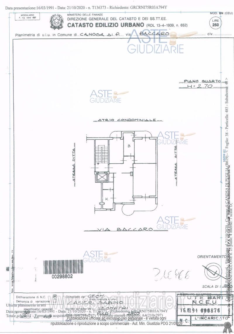 Vendita all'asta Senza incanto, con gara telematica sincrona - LOTTO UNICO: Piena proprietà di appartamento della superficie commerciale di 115,02 mq con annesso box auto della superficie commerciale di 22,95 mq. Prezzo base € 119.243,10 (offerta minima € 89.432,32). Data vendita 19/05/2026 ore 11:00. Giudice Dott. Diletta Calò. Professionista delegato alla vendita Avv. Michelina Dellafortuna - Email "avv.dellafortuna@gmail.com"; Cell. 3494902055. Custode Giudiziario Avv. Michelina Dellafortuna - Email "avv.dellafortuna@gmail.com"; Cell. 3494902055. Rif. Tribunale di Trani - Esecuzione immobiliare post legge 80 n. 117/2020