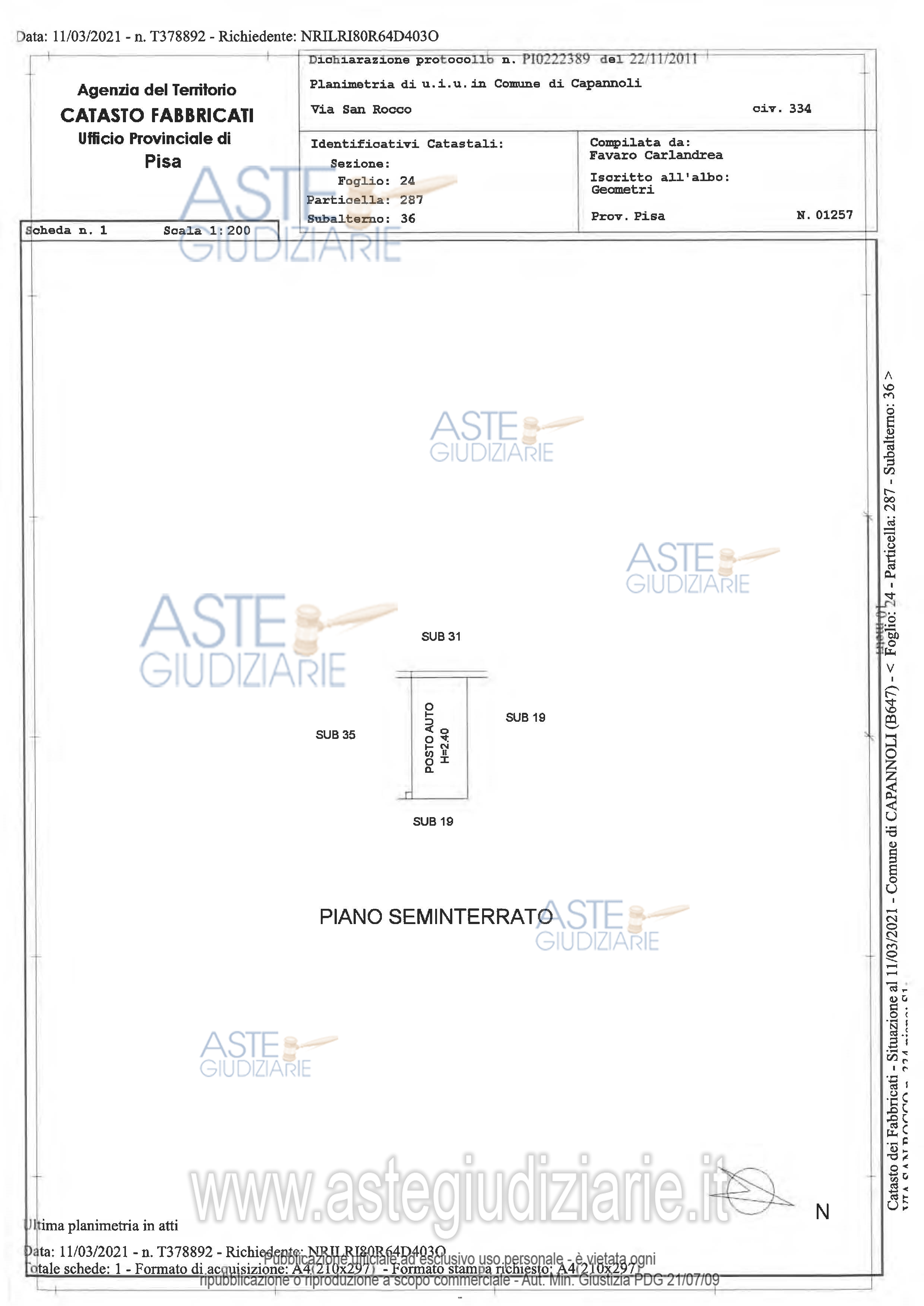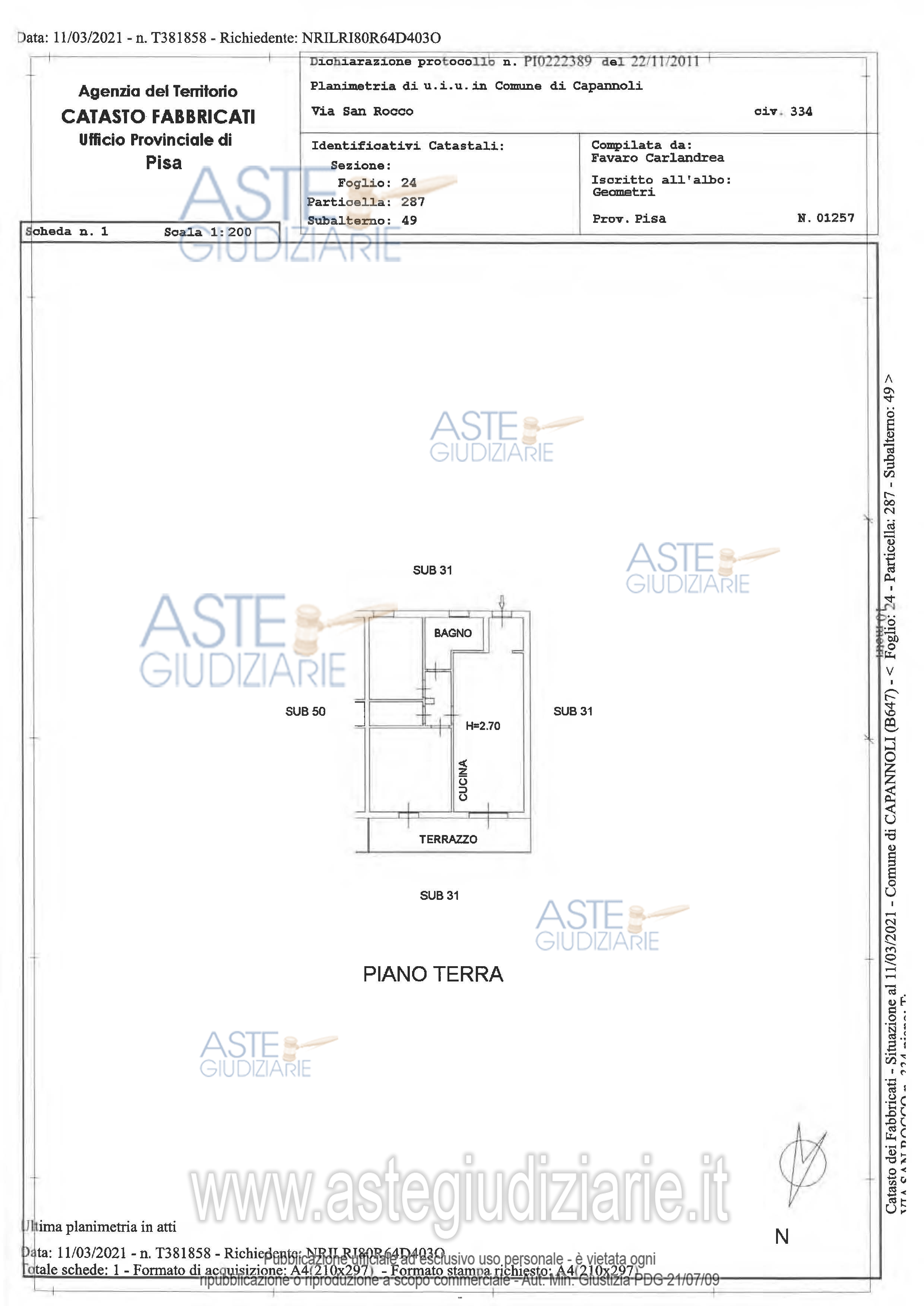 Custode Giudiziario: Dott. Cosimo Erriquez - Email "prenotazionipisa@astagiudiziaria.com".