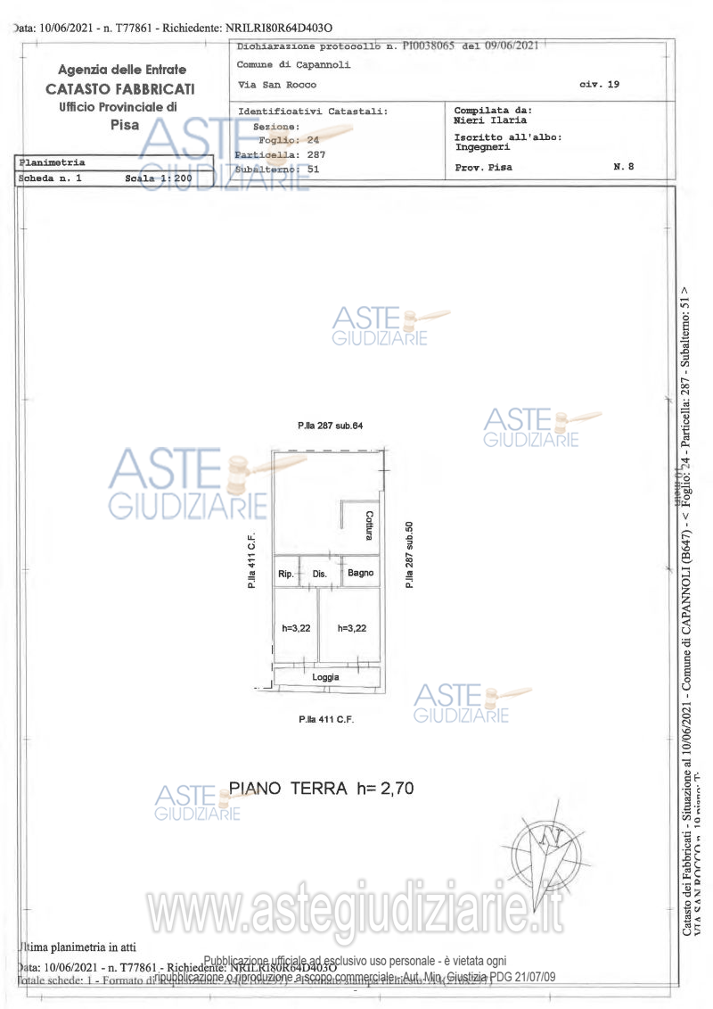 Custode Giudiziario: Dott. Cosimo Erriquez - Email "prenotazionipisa@astagiudiziaria.com".
