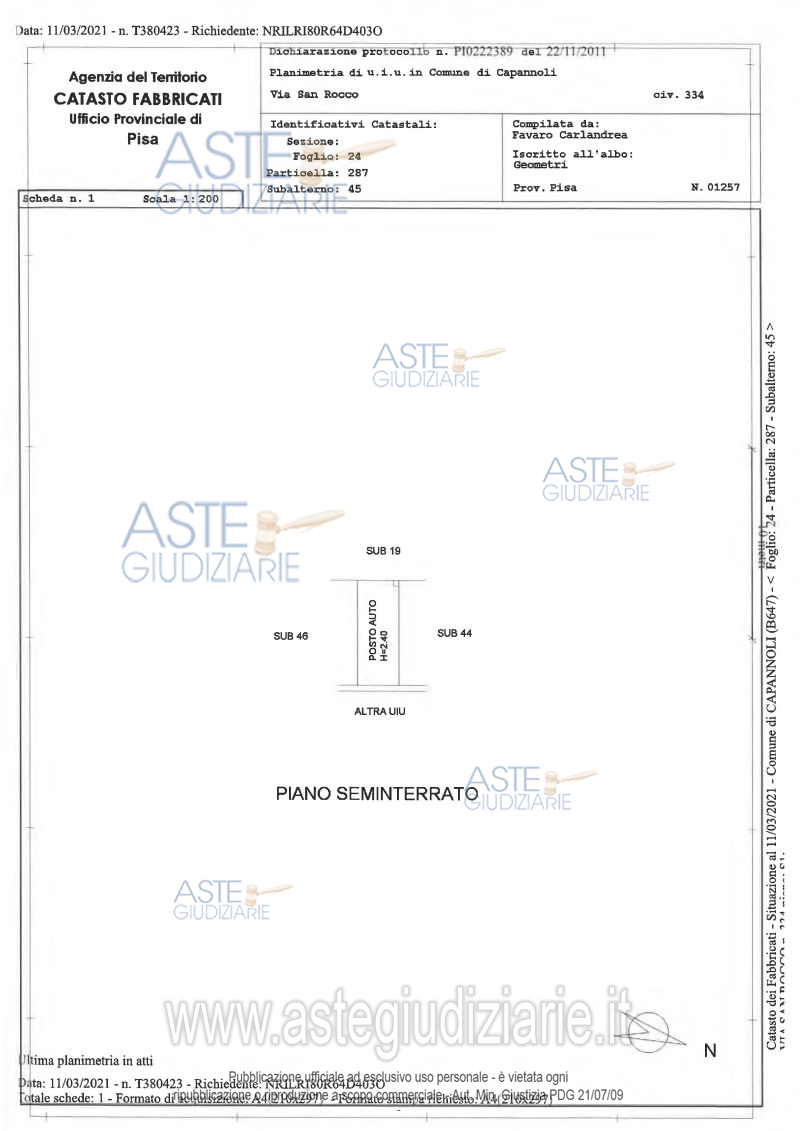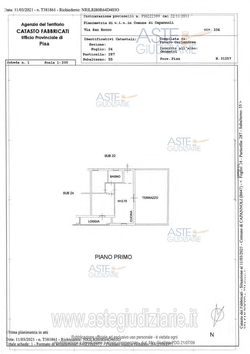 Custode Giudiziario: Dott. Cosimo Erriquez - Email "prenotazionipisa@astagiudiziaria.com".