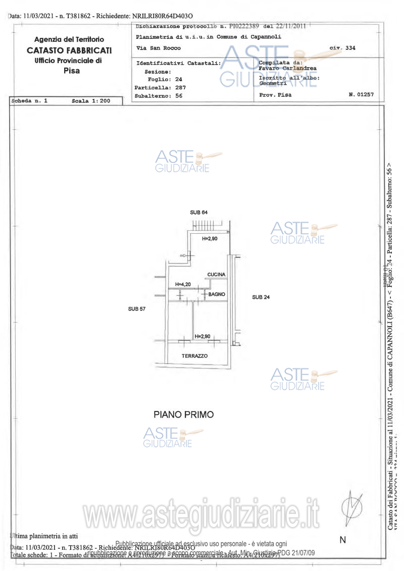 Custode Giudiziario: Dott. Cosimo Erriquez - Email "prenotazionipisa@astagiudiziaria.com".