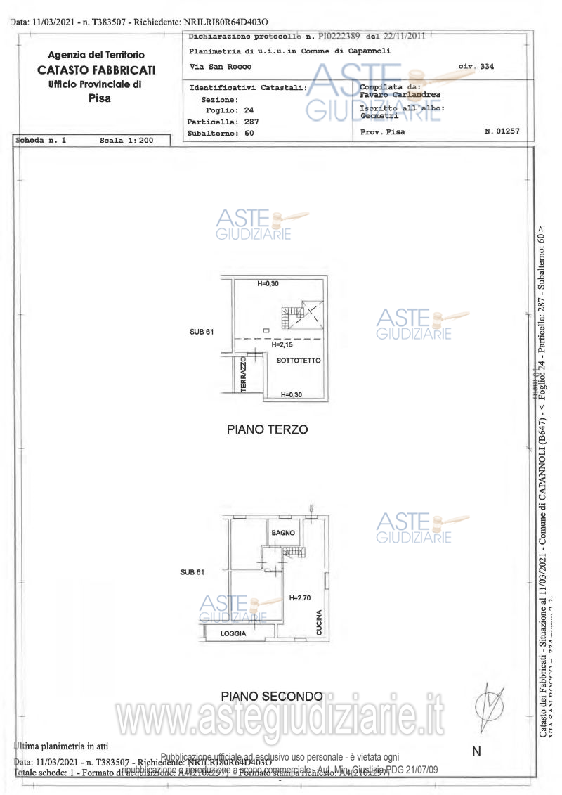 Custode Giudiziario: Dott. Cosimo Erriquez - Email "prenotazionipisa@astagiudiziaria.com".