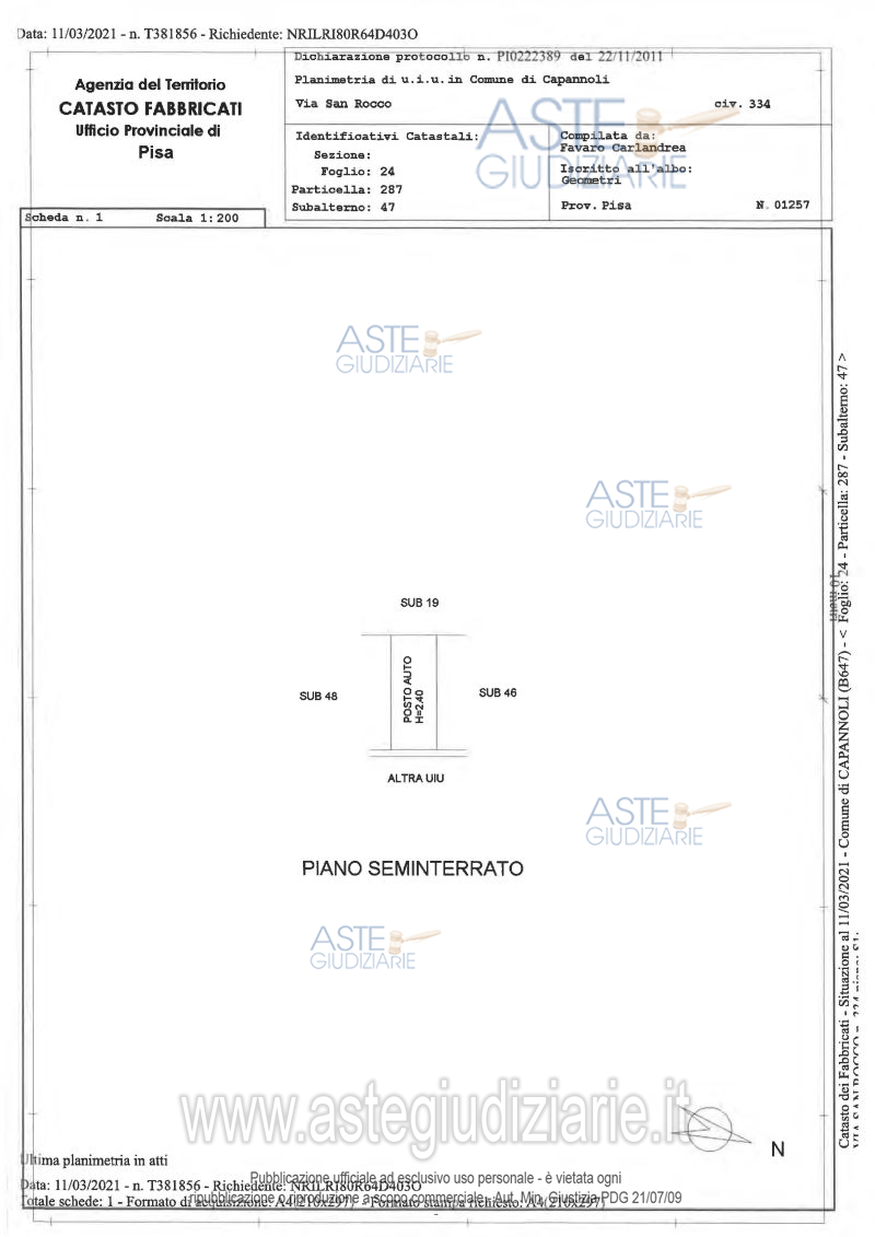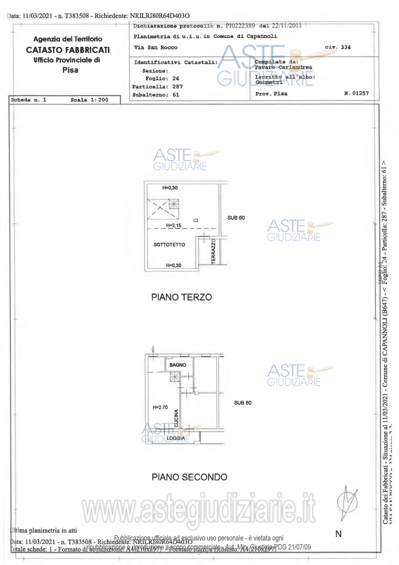 Custode Giudiziario: Dott. Cosimo Erriquez - Email "prenotazionipisa@astagiudiziaria.com".
