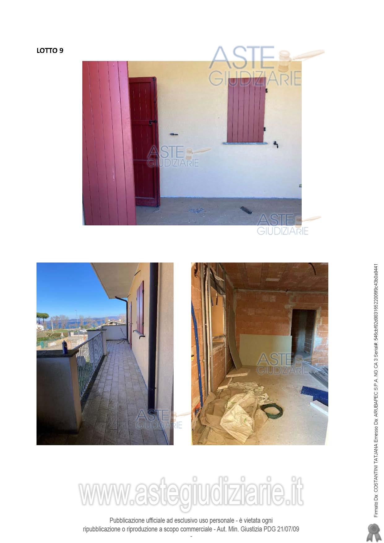 Vendita all'asta Senza incanto, con gara telematica asincrona - LOTTO 9: Appartamento al piano primo, completamente allo stato grezzo per una superficie interna di mq 36,00 circa, oltre a portico e terrazzo sovrastante. E' annesso al piano posto auto esterno. L'accesso avviene da vialetto di proprietà esclusiva attraverso scala a chiocciola attualmente non presente, il tutto meglio descritto in avviso di vendita. Prezzo base € 35.000,00 (offerta minima € 26.250,00). Data inizio operazioni di vendita: 28/05/2026 ore 12:20. Professionista delegato alla vendita Not. Biancamaria Ciambella - Email "info@asnoviri.it"; Tel. 0761351236. Custode Giudiziario Not. Biancamaria Ciambella - Email "info@asnoviri.it"; Tel. 0761351236. Rif. Tribunale di Viterbo - Espropriazione immobiliare (cartabia) n. 83/2024