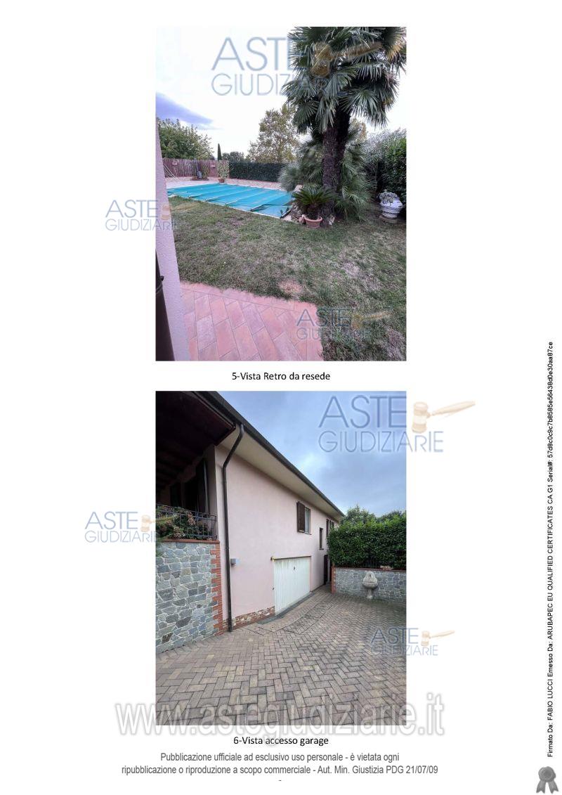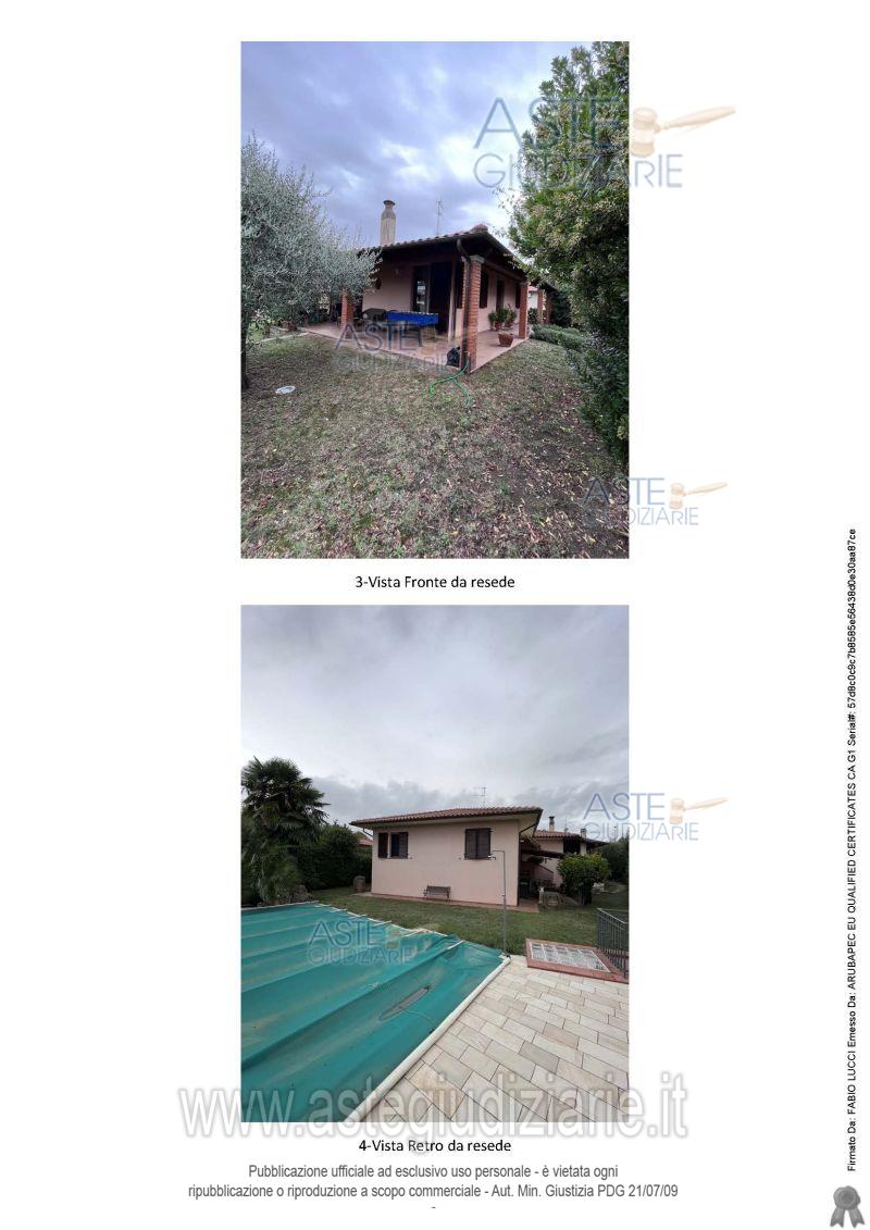 Vendita all'asta Senza incanto, con gara telematica sincrona mista - LOTTO UNICO: Villetta unifamiliare che si sviluppa a piano seminterrato e terra, collegati da scala interna, composto piano terra o rialzato da porticato, ingresso, soggiorno, cucina, due disimpegni, due bagni e tre camere, piano interrato disimpegno, bagno e cinque vani, corredato da locale ad uso autorimessa a piano seminterrato accesso da rampa esterna e collegata con l’interno, da un resede adibito a verde, rampa, e camminamenti, e da una porzione di terreno collegato al resede su cui insiste piscina. Prezzo base € 360.380,00 (offerta minima € 270.285,00). Data vendita 14/05/2026 ore 11:00. Giudice Elisabetta Rodinò Di Miglione. Professionista delegato alla vendita Avv. Barbara Rossi - Email "barbararossi.avv@gmail.com"; Cell. 3470072193; Tel. 0575041800. Custode Giudiziario Avv. Istituto Vendite Giudiziarie Arezzo - Siena - Email "visite.ivg@gmail.com"; Cell. 3397337017; Tel. 0577318111. Rif. Tribunale di Arezzo - Espropriazione immobiliare (cartabia) n. 73/2023