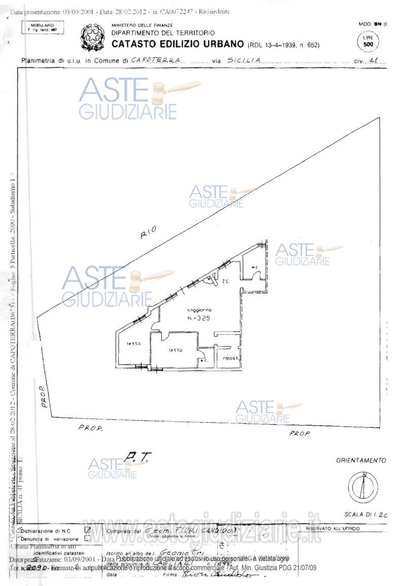 Vendita all'asta Senza incanto, con gara telematica asincrona - LOTTO UNICO: In Comune di Capoterra (CA), località “Liori”, piena proprietà del fabbricato per civile abitazione composto da appartamento con soggiorno con angolo cottura, due bagni, ripostiglio, due camere e deposito al piano secondo interrato, ampio deposito formato da tre vani, un locale uso ufficio e servizi igienici al piano primo interrato; il tutto con area cortilizia pertinenziale di mq.394. Prezzo base € 54.880,00 (offerta minima € 41.160,00). Data inizio operazioni di vendita: 27/05/2026 ore 11:00. Giudice Valentina Frongia. Professionista delegato alla vendita Not. Michele Puxeddu - Email "mpuxeddu@notariato.it"; Tel. 070663241. Rif. Tribunale di Cagliari - Contenzioso civile n. 2439/2009