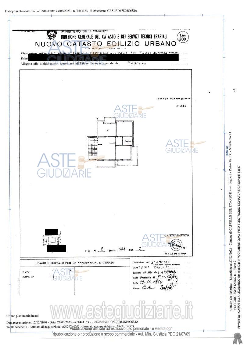 Vendita all'asta Senza incanto, con gara telematica asincrona - LOTTO 6: Appartamento ubicato a Cappelle Sul Tavo (PE) Via Tasso n. 1, piano secondo, con superficie convenzionale complessiva di 106,00 mq (altezza 2,8 m.). L’unità abitativa (primo secondo), fa parte di un complesso residenziale con più piani fuori terra, costruito con struttura portante in c.a. tamponatura a cassetta, infissi in parte in legno ed in parte inalluminio, pavimentazione in marmette e/o similari. Prezzo base € 60.370,31 (offerta minima € 45.277,73). Data inizio operazioni di vendita: 05/05/2026 ore 09:00. Giudice Dott. Daniela Angelozzi. Professionista delegato alla vendita Avv. Paolo Galliani. Custode Giudiziario Avv. Paolo Galliani - Email "avv.galliani@hotmail.it"; Cell. 328-7074530; Tel. 085-4225680. Rif. Tribunale di Pescara - Esecuzione immobiliare post legge 80 n. 254/2022